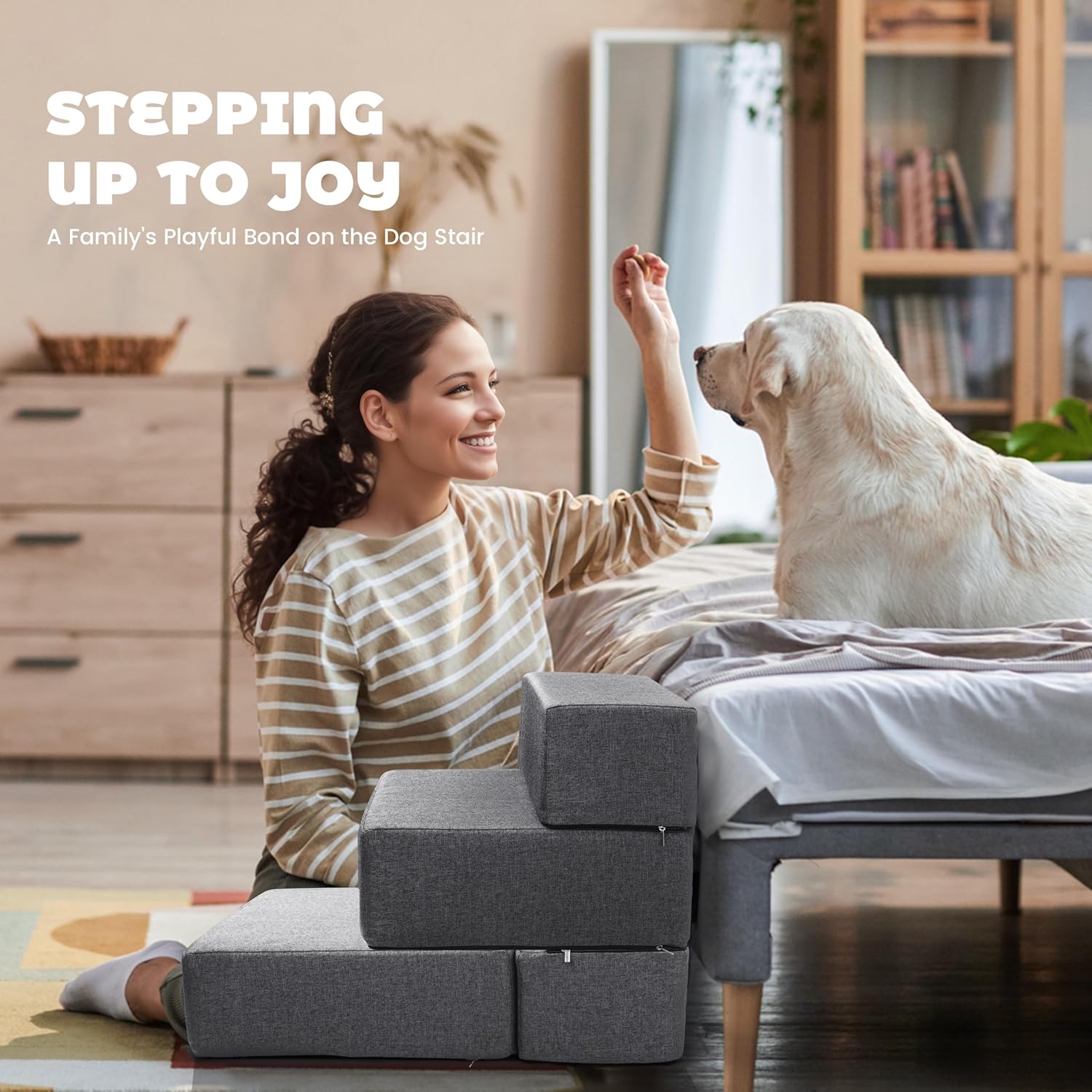 - HIGH DENSITY FOAM: Pet stairs are filled with high-density foam, offering firm yet comfortable support that's just rightânot too soft, not too hard; The outer layer is crafted from cotton-linen fabric, which provides a non-slip surface while ensuring a pleasant touch for your pet