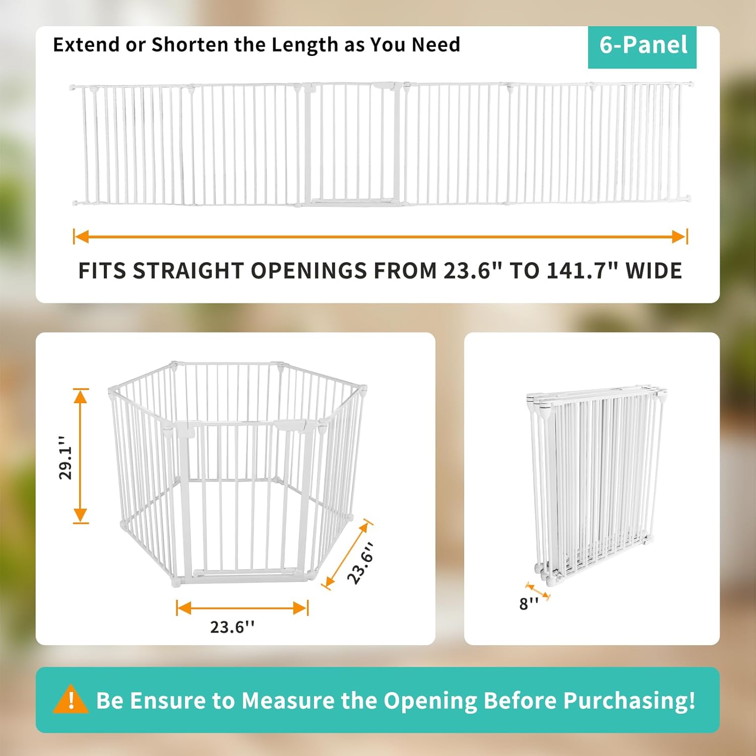 - 【SUPERWIDE】Fits opens up to 189 inches wide and stands 30 inches tall. Can convert from a super-wide gate to an 6-panel play yard.