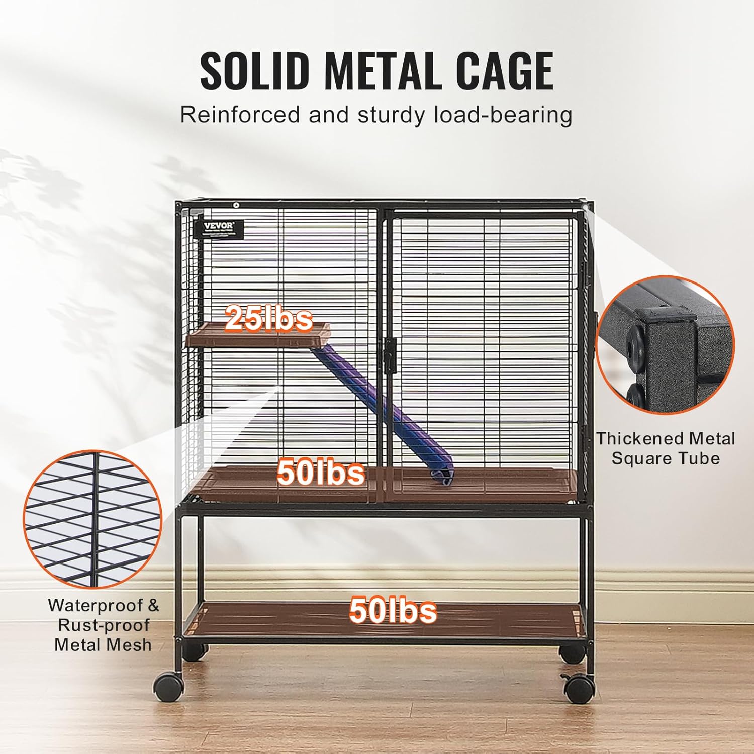VEVOR 36" Rolling Metal Ferret Cage, Large 2-Tier Critter Nation Cage, Small Animal Cage with Ramps & Tray, Easy to Set up for Pet Mice, Hamster, Guinea Pig, Chinchilla, Squirrel, Hedgehogs, Bunny