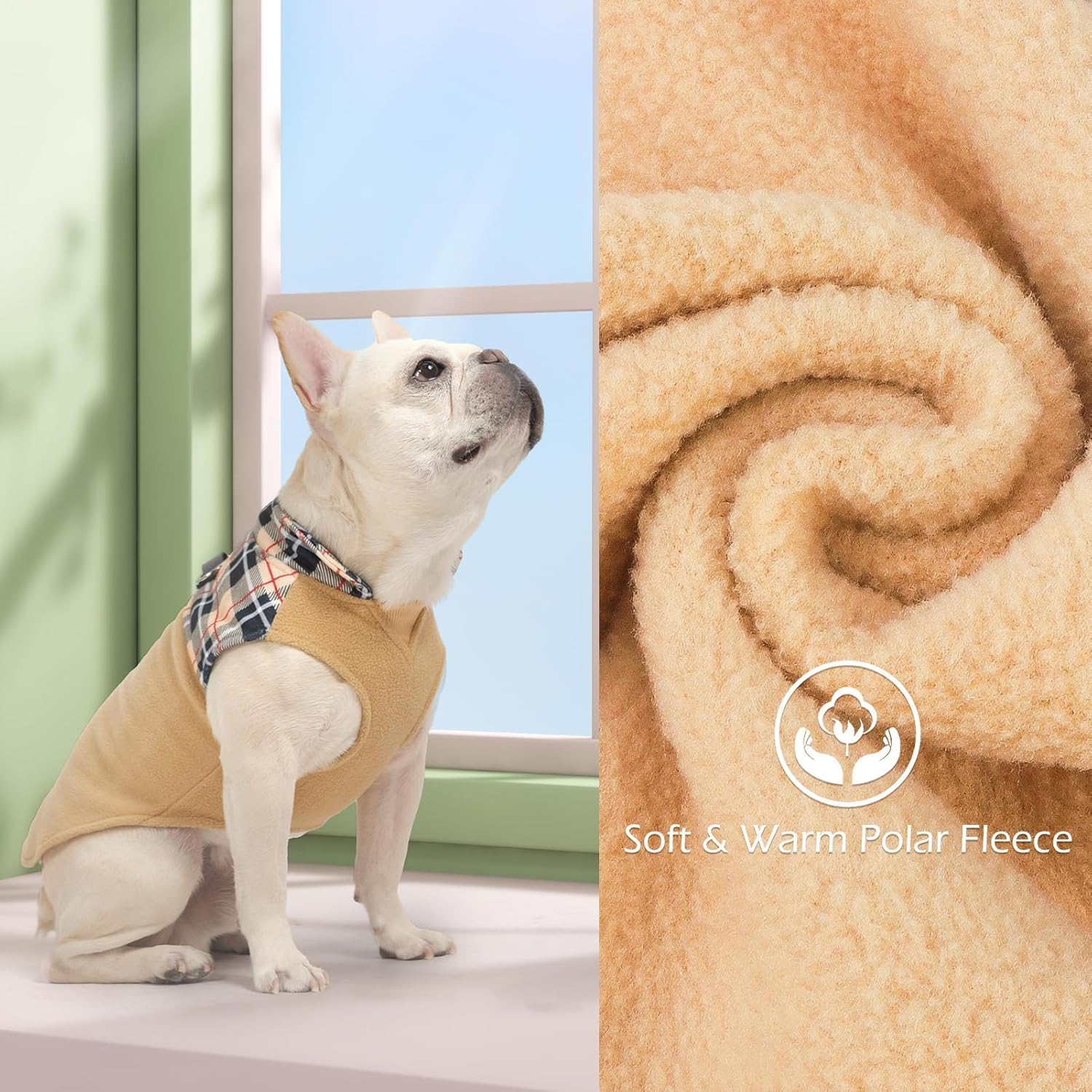 EXPAWLORER Fleece Dog Sweater for Small Medium Dogs - Classic Plaid Jacket, Doggie Winter Coat Vest with 2 D-Rings for Leash, Cold Weather Clothes, Pet Apparel,Sweatershirt for Boy or Girls