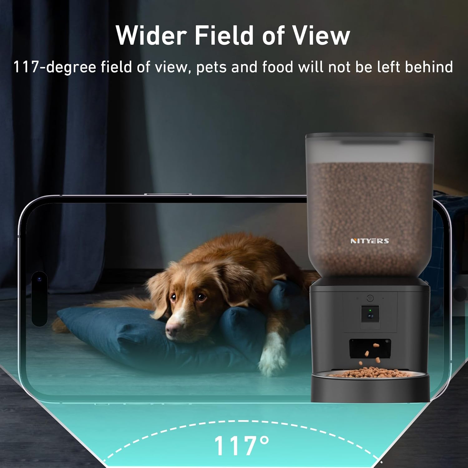 - Smart APP Control: Nityers automatic dog feeder is 5GHz and 2.4GHz WiFi-enabled, allowing you to program and monitor your pet's meals anywhere, anytime, through iOS and Android devices—with no subscription fee required. The app can also be shared with other family members so they can check on your pet too. With flexible feeding times and precise portion control, this cat automatic feeders help pets develop healthy dietary habits