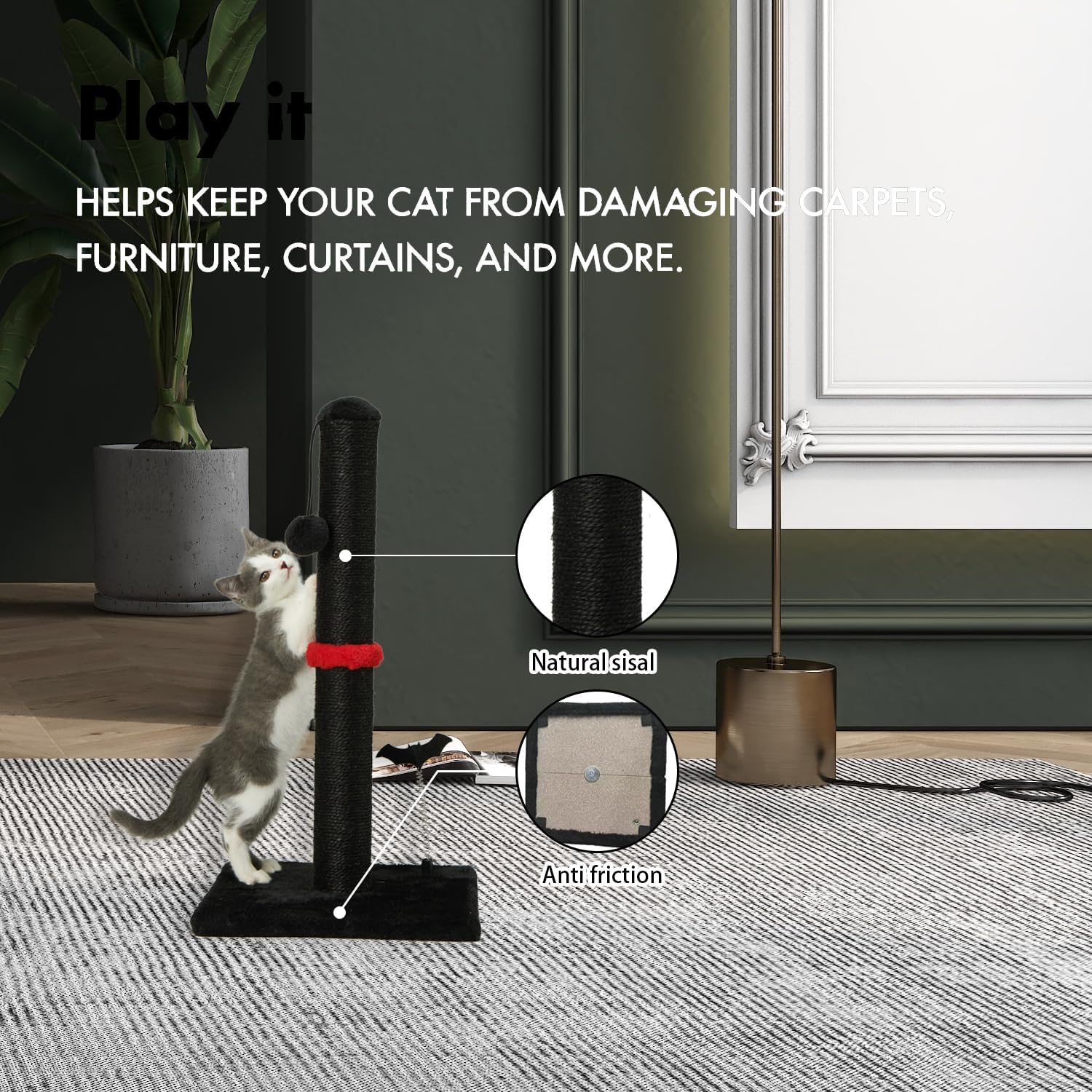 - Protect your furniture - Grab sticks and plush toys combine to attract cats to play and grab, natural sisal is suitable for cats to grab, effectively preventing cats from grabbing furniture