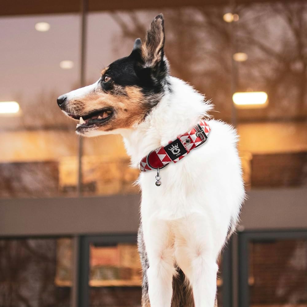 - Metal Collar for Dogs: The dog collars for medium dogs and large dogs with 4 adjustable points, easy to adjust the comfortable fit and attach to dog leash or dog collar. Please follow the size chart to measure your dog carefully before purchasing to ensure the halloween collar for dogs or christmas collar for dogs are fit well to your dog. For dog neck (L: 18.9â-21.7â, M: 15.8â-18.9â, S: 12.6â-15.8â)