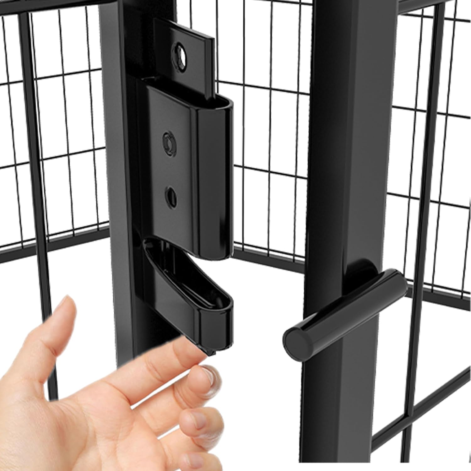 - 🐶𝗗𝘂𝗿𝗮𝗯𝗶𝗹𝗶𝘁𝘆 & 𝗦𝗮𝗳𝗲𝘁𝘆:This robust metal pet playpen is essential for dog lovers. It is coated with a rust-resistant finish and is non-toxic, ensuring it is safe and durable for both outdoor and indoor use. The automatic gravity lock on the gate secures your pet safely inside, providing a comfortable area for play and rest