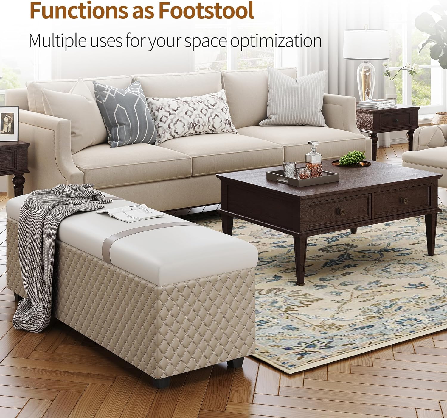 Ottoman with Storage 38 inches, Furniture End of Bed Storage Benches, Long Ottomans Bench with hinged lid, Bench seat Trunk for Foot Rest in Bedroom, Living Room (Multicolor)