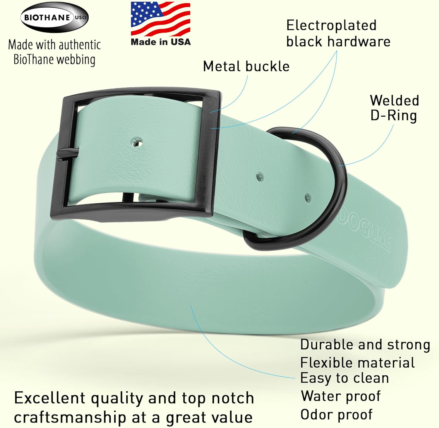 Dogline Biothane Waterproof Dog Collar Strong Coated Nylon Webbing with Black Hardware Odor- Proof for Easy Care Easy to Clean High Performance Fits Small Medium or Large Dogs, Sage Green