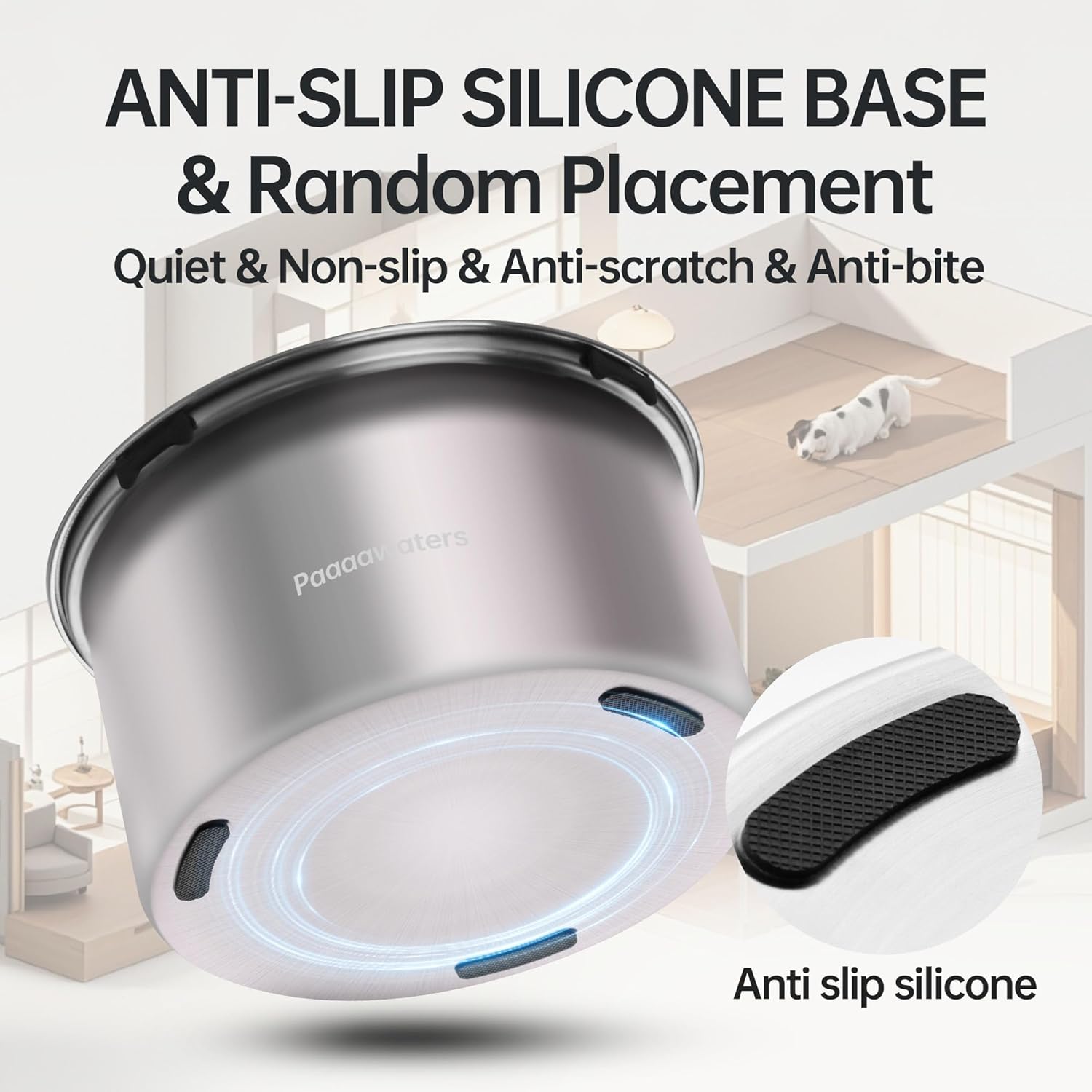 - Dog Water Bowl No Spill: This slow water bowl for dogs features a spill-proof floating plate design that uses water buoyancy to adjust the plate, slowing your dog's drinking speed. This water bowl prevents water from splashing out, avoiding getting the ground dirty.