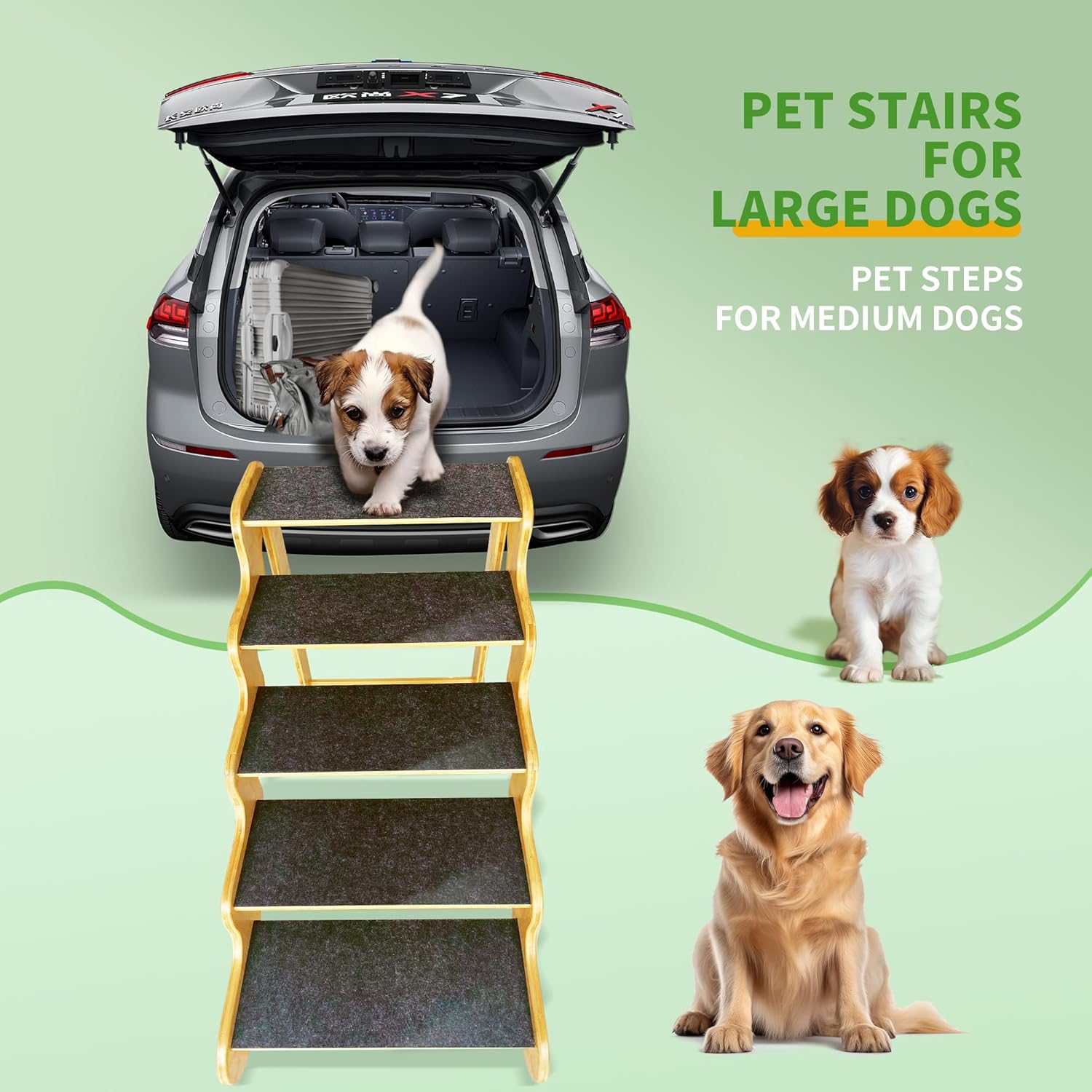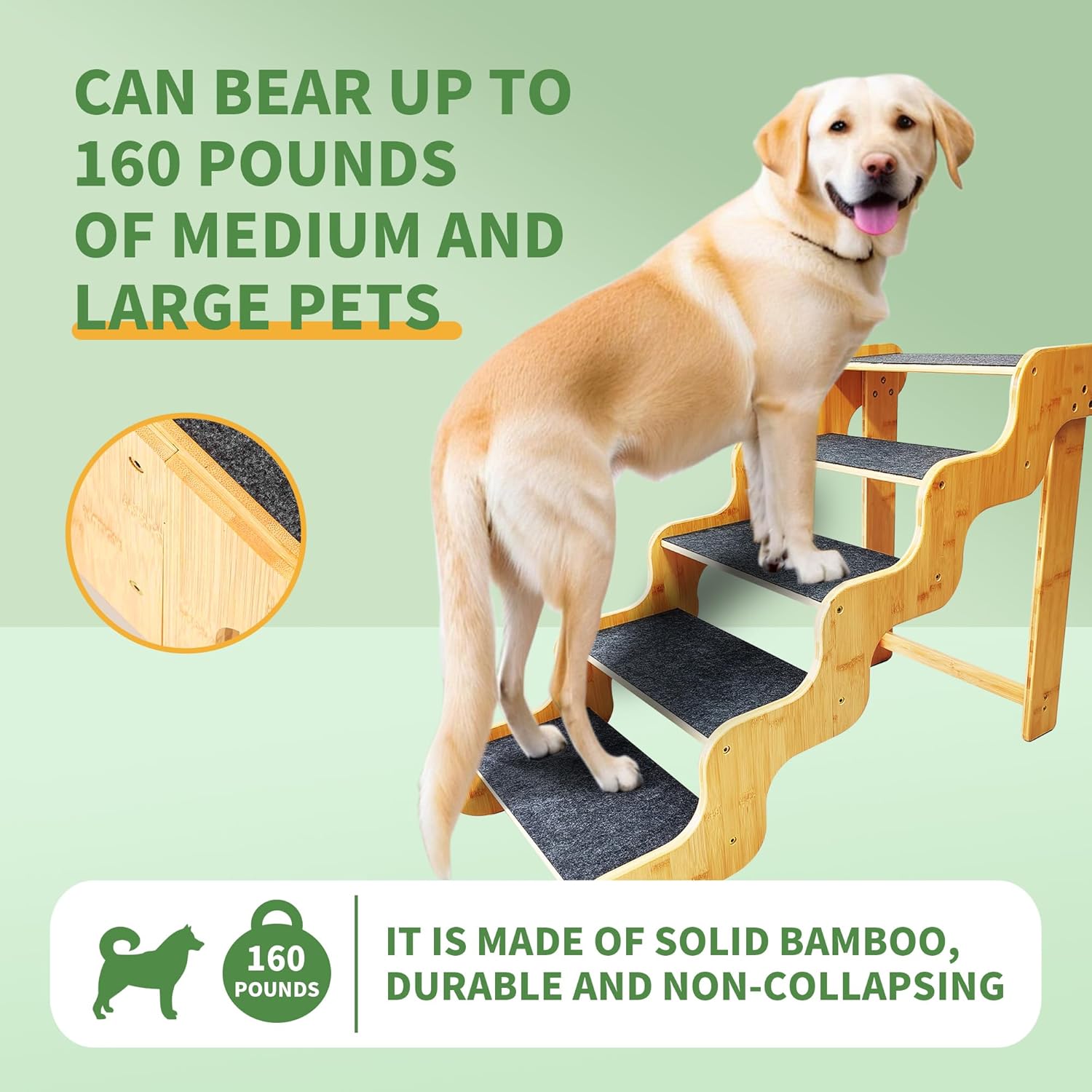 Dog Steps for Bed,24 Inches 5 Step Dog Stairs for Senior Pets to Get On 30 Inches High Beds/Car,Made of Bamboo Can Support Large Dogs Weighing Up to 160 LB