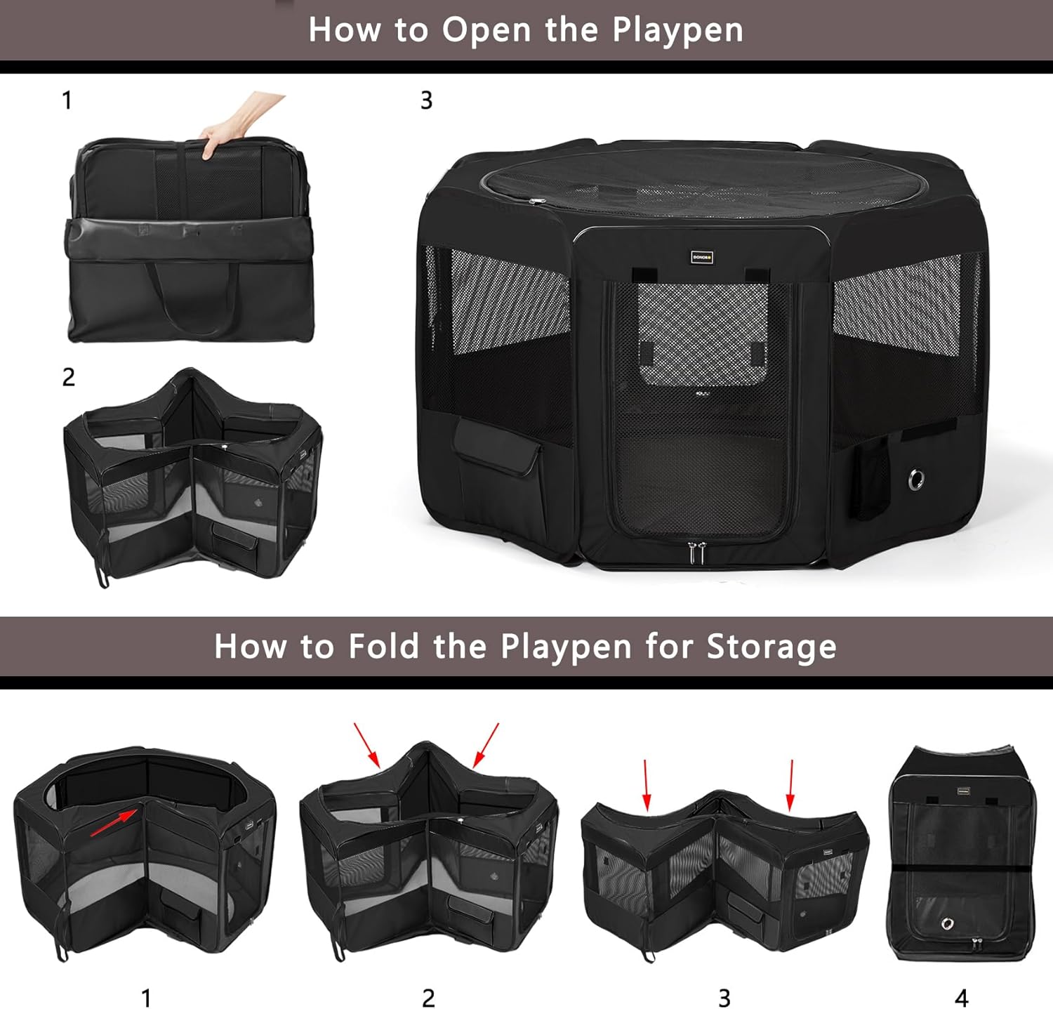 - 【EASY TO SET UP & CARRY】Portable Dog playpen with carrying case is ideal for indoor and outdoor use. Sets up in seconds and requires no assembly, folds flat when not in use for easy carrying and storing.