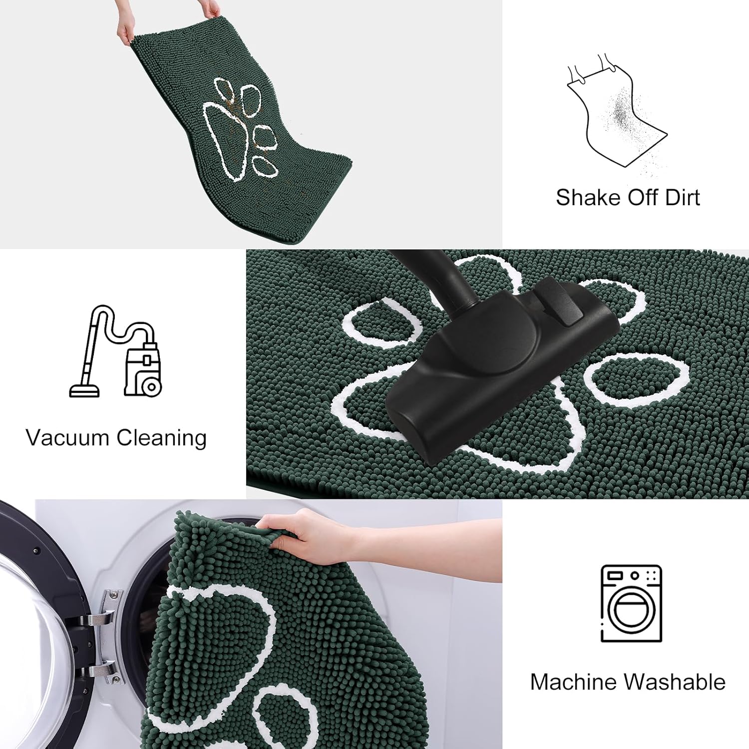 Smiry Dog Door Mat for Muddy Paws, Absorbent Dirt Trapper Non Slip Quick Dry Washable Chenille Mat for Mud Dogs, Entry Rug for Indoor and Outdoor (71x46 Inches, Green)