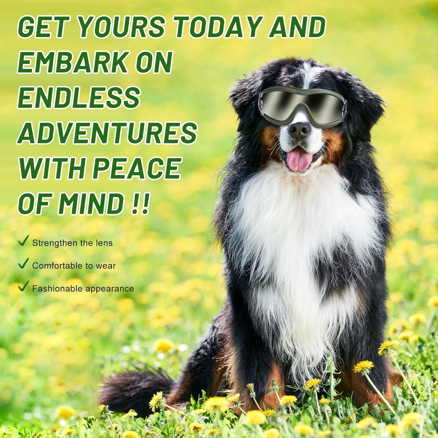 NVTED Dog Sunglasses Goggles, UV Wind Dust Fog Protection Pet Glasses Eye Wear Protection with Adjustable Strap for Medium or Large Dog (Green)