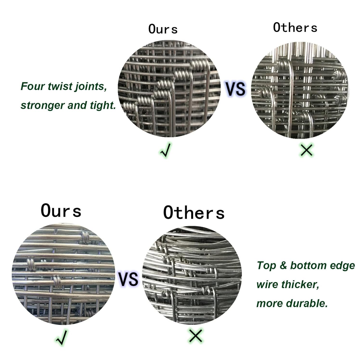 - Scientific Design -The bottom and upper have different opening mesh sizes.The Openings of fencing mesh get smaller toward the bottom to prevent rabbits, dogs, cats, chickens, foxes and other small animals to enter your farm,field or Garden.