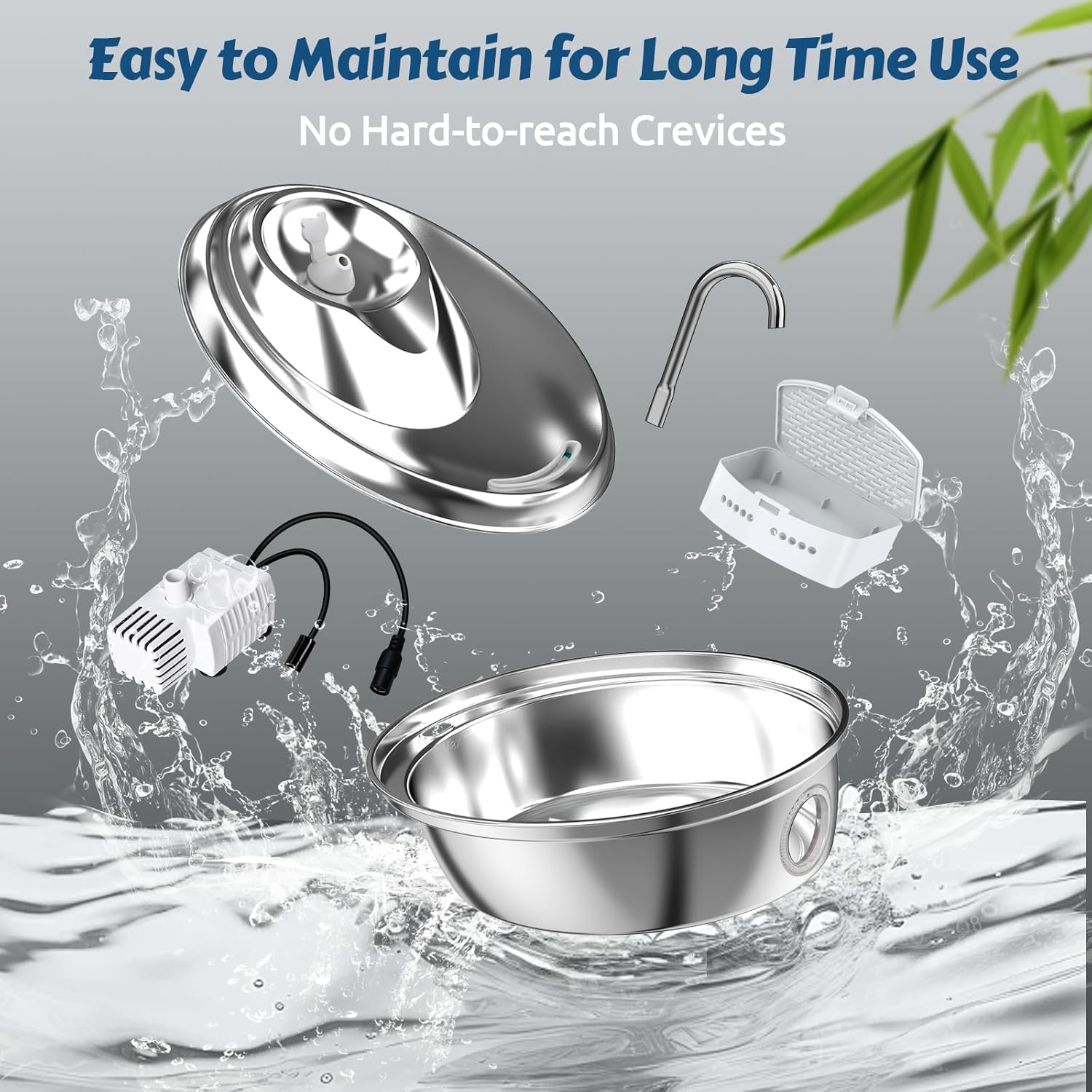 - đ˝ăEasy-to-maintain DesignăInnovation Integrated disassembly design keeps the pump, removable filter cartridge and cable completely separate from the fountain, No hard-to-reach crevices. ORSDA pet fountain only have 4 parts : cover, base bowl, pump and filter case. Dishwasher safe.