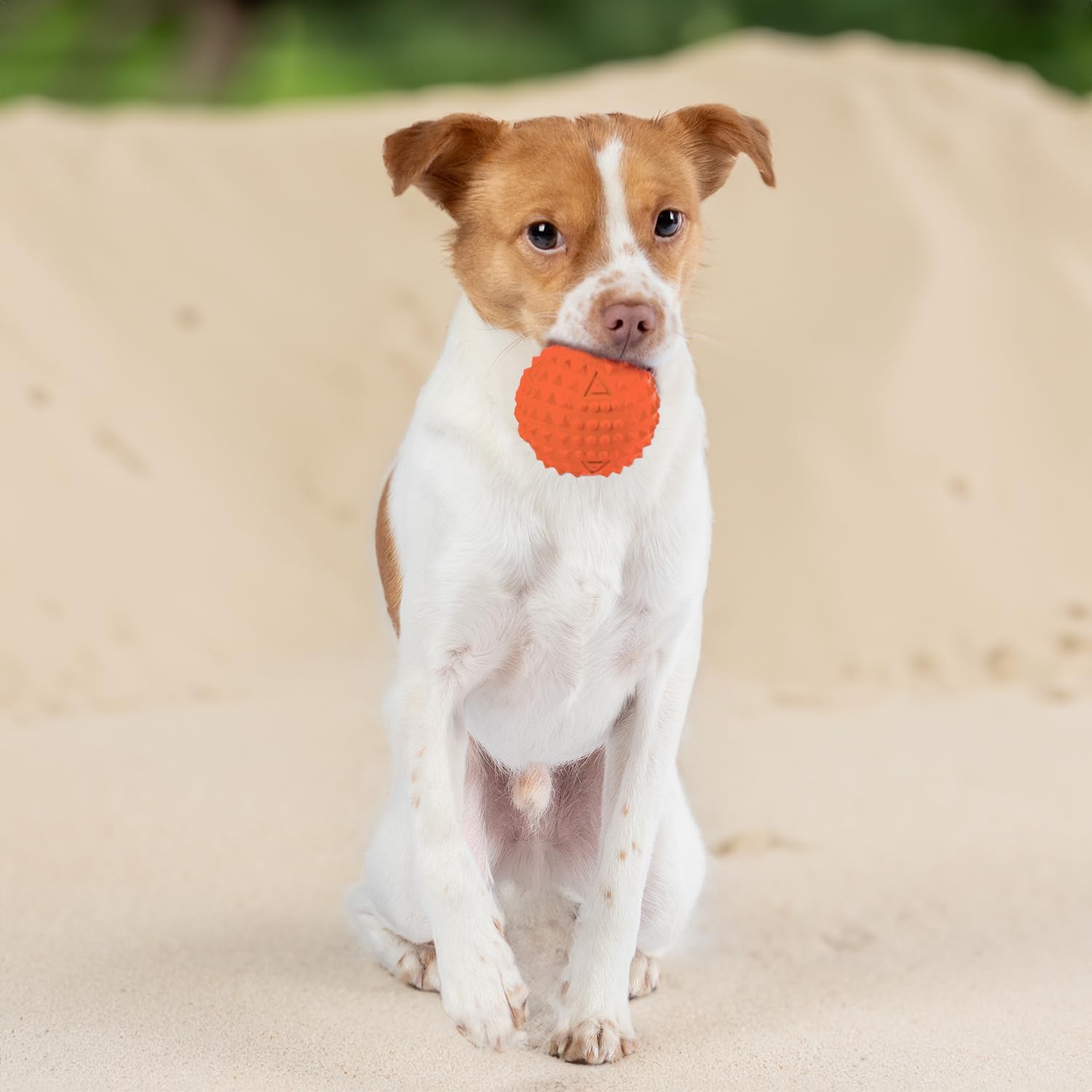 - TEXTURED WITH SPIKES FOR DENTAL HEALTH: The spiked surface of these strong dog toys for aggressive chewers massages gums and cleans teeth, promoting better oral hygiene as they enjoy their favorite squeaky ball