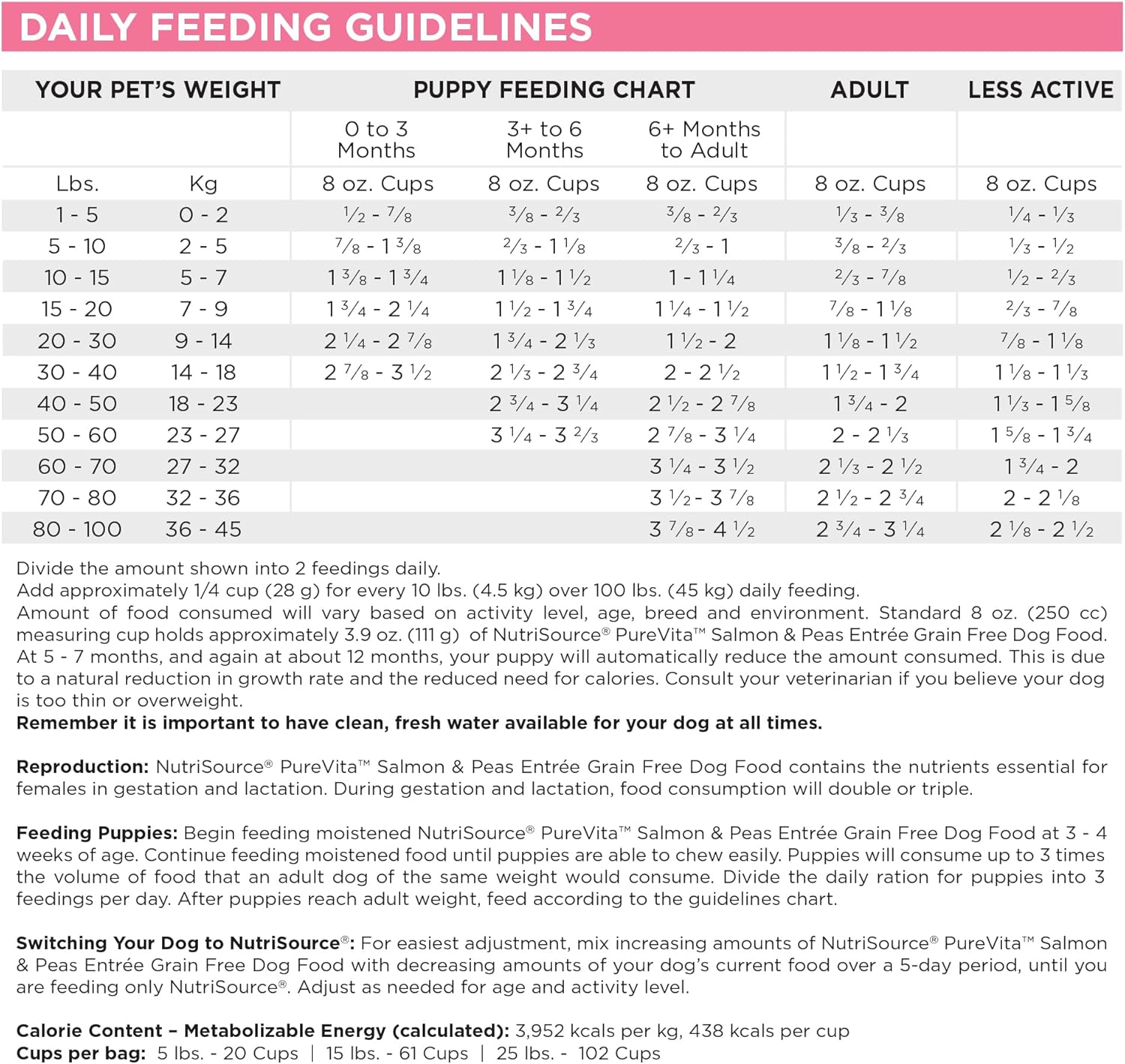 - CONTAINS: (1) 12LB Bag of NutriSource Pure Vita Salmon and Peas Dry Dog Food