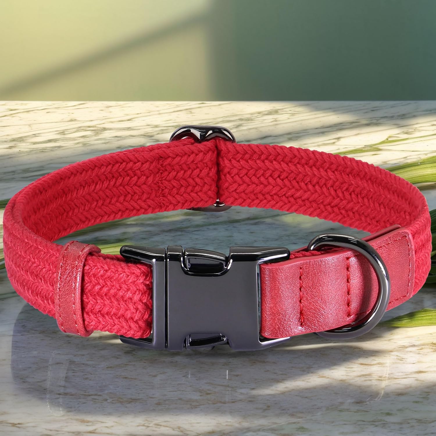 PET ARTIST Soft Cotton Dog Collar for Medium Dogs in Glamorous Red, Simple Dog Collar with Quick Release Metal Buckle & D Ring, M Size (13-21")