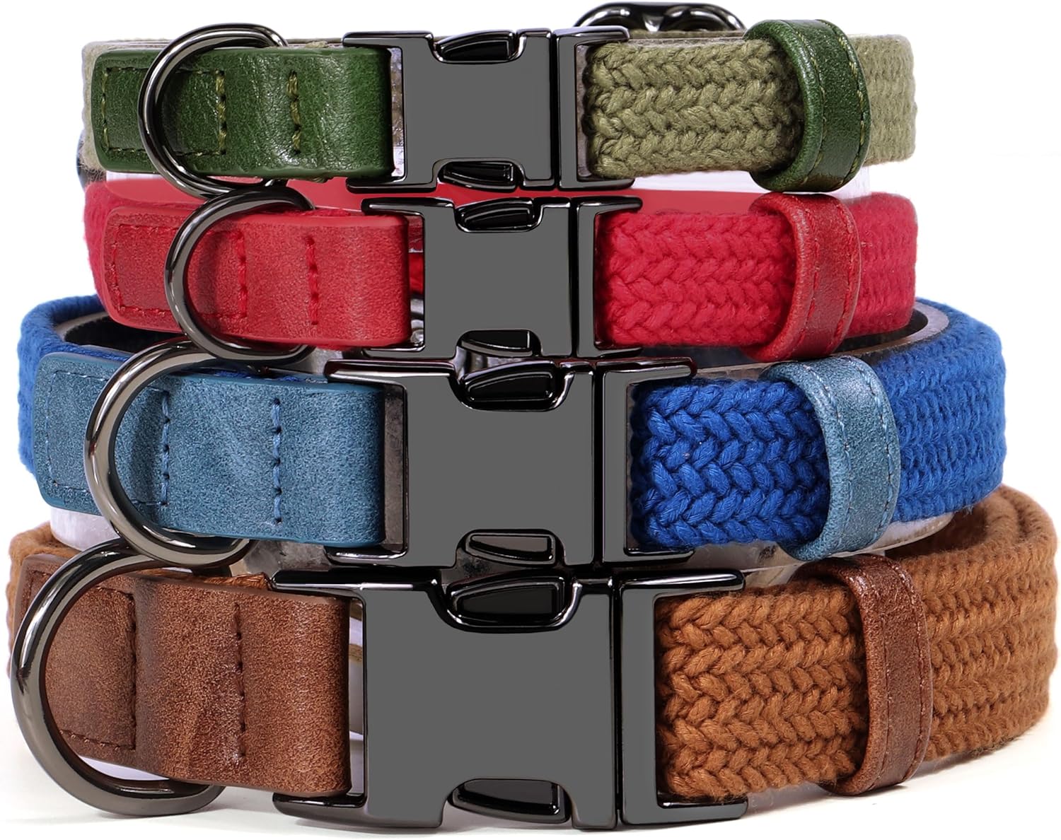 PET ARTIST Soft Cotton Dog Collars for Small Dogs in Rustic Brown, Simple Dog Collar with Quick Release Metal Buckle & D Ring, S Size (10-16")