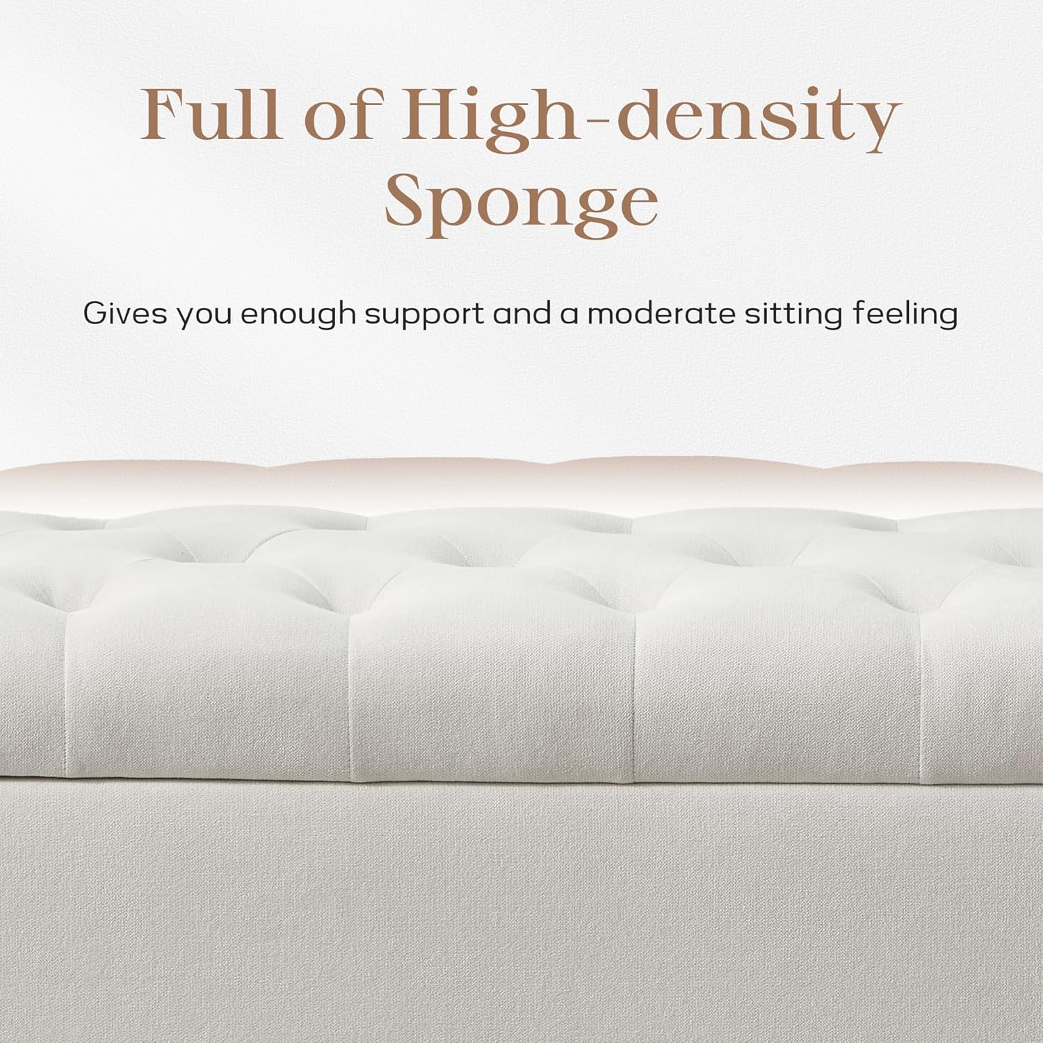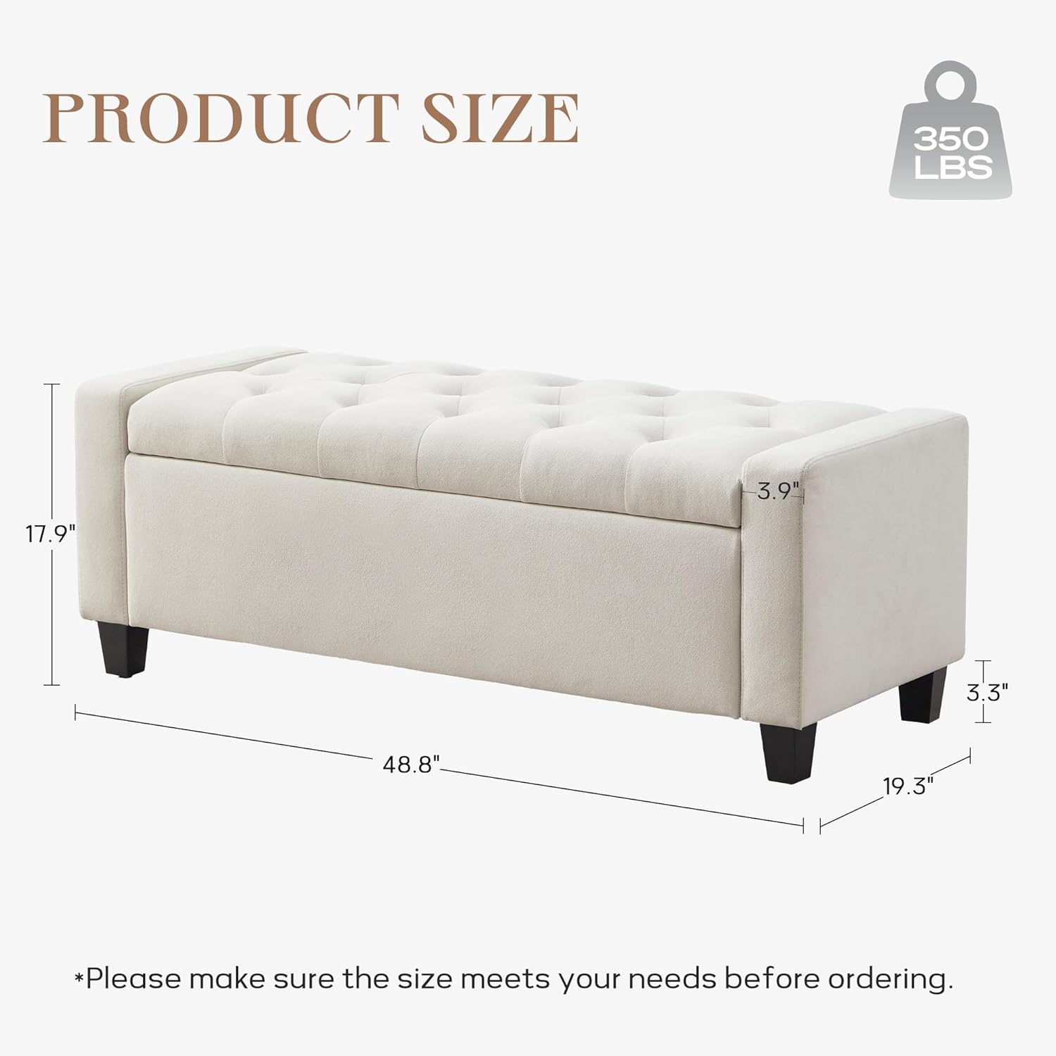 Ottoman with Storage, 48.8" Fabric Storage Ottoman Bench with Hinge, Bedroom Bench, Upholstered Benches with Seating for Living Room, Entryway (Beige)