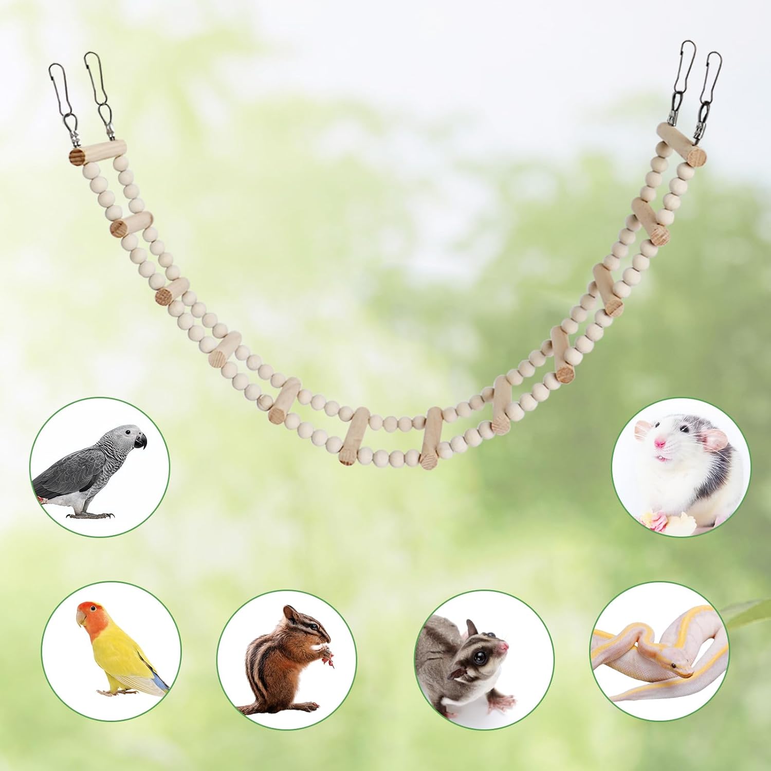- 【Great for Small Pets】: Perfect for a range of small to medium-sized birds like african greys, budgies, cockatiels, lovebirds, conures, quakers and parrotlets. It’s also ideal for small animals like rats, sugar gliders, squirrels, and even snakes. This versatile ladder promotes natural climbing instincts, helping keep your pets active and content.