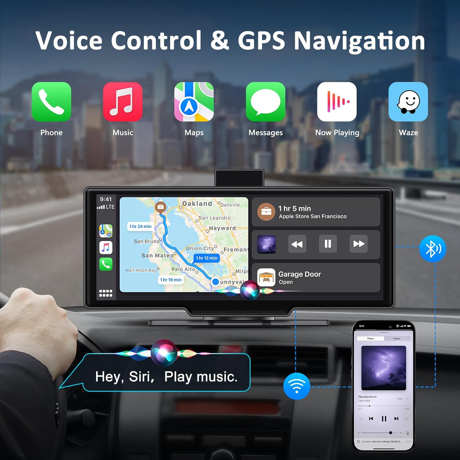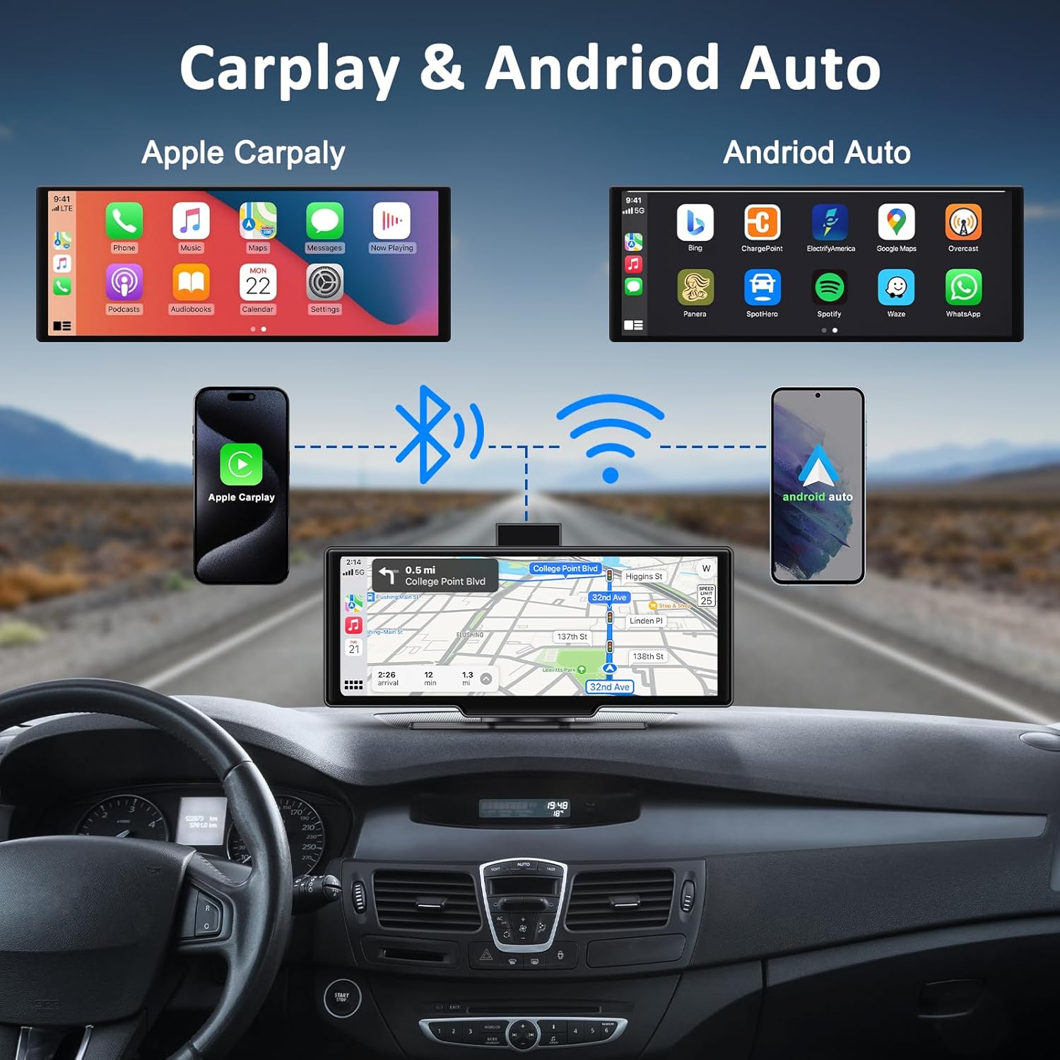 - 【Apple carplay & Android Auto】.Support all iphone and android phones, you can use Apple Carplay or Android Auto freely.Connect once and the navigation screen will automatically connect to your iphone every time you get in your car.you can direct access to maps, music and other apps