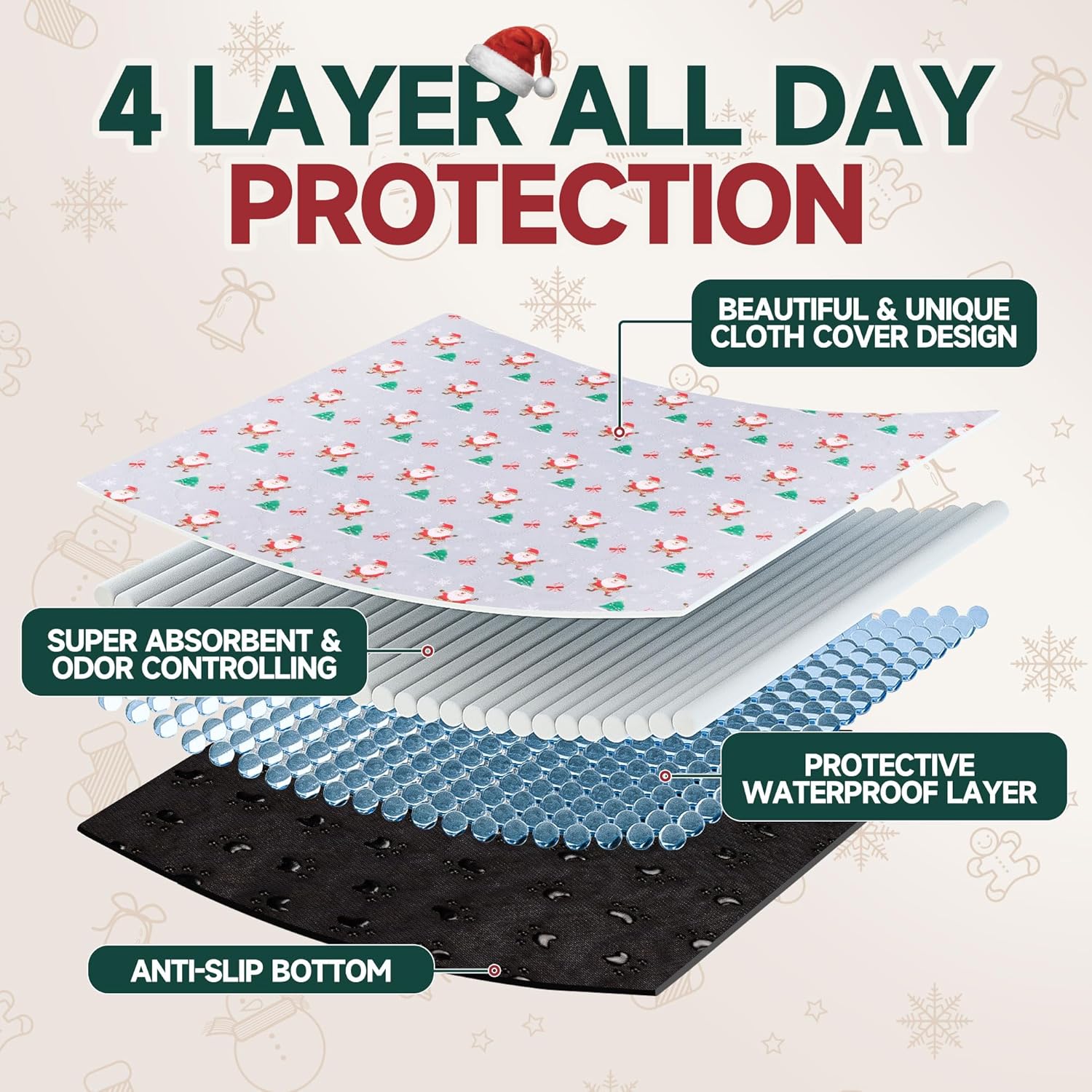 Aitmexcn Christmas Washable Pee Pad for Dogs, 2PCS 48x48in Xmas Super Absorbent Reusable Puppy Pads Pet Training Pads, Waterproof mats for Playpen, Crate, Whelping Box, Potty Training