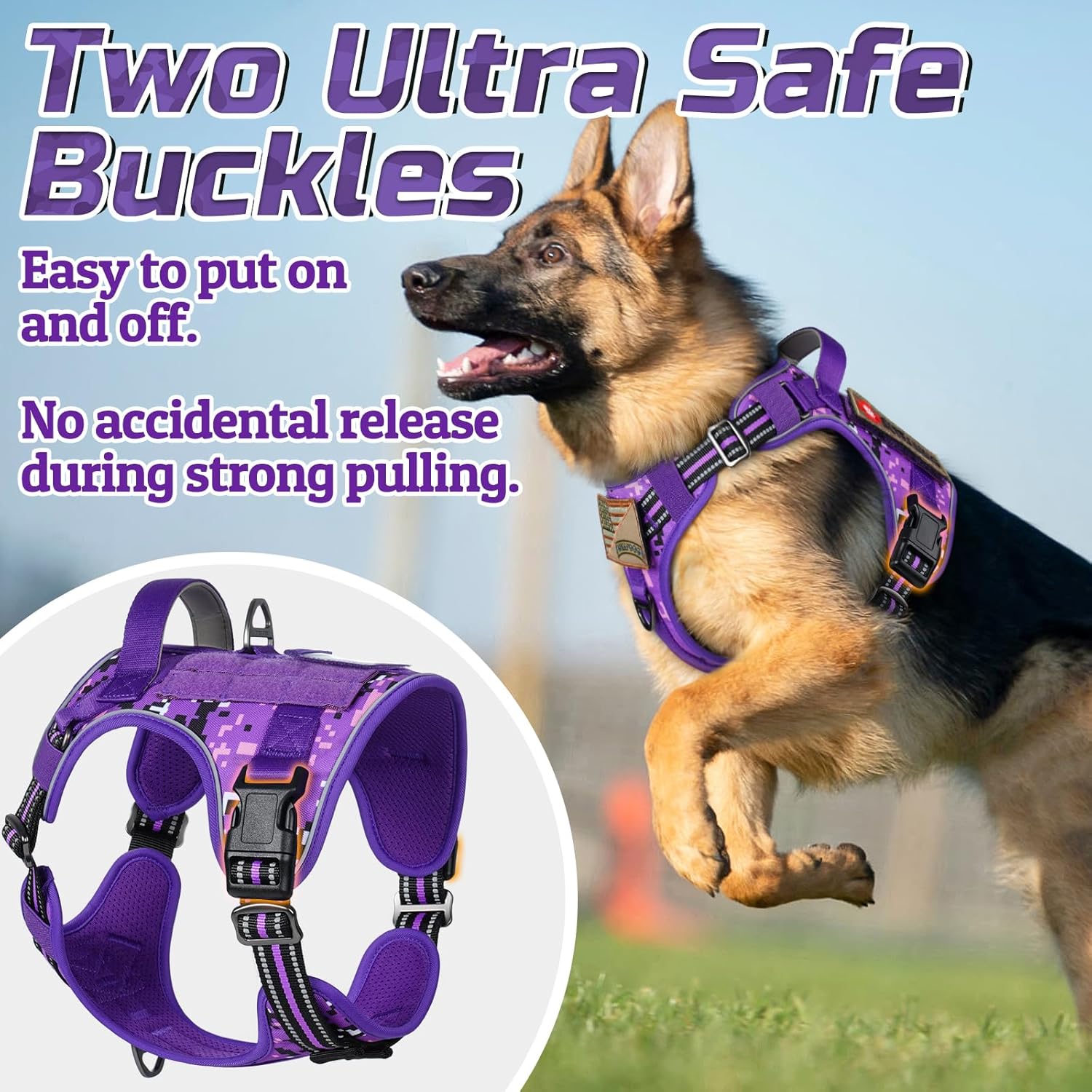 rabbitgoo Tactical Dog Harness for Large Dogs, No Pull Military Service Vest with Handle & Molle, Easy Control for Training Walking, Adjustable Reflective Straps, Purple Camo, XL
