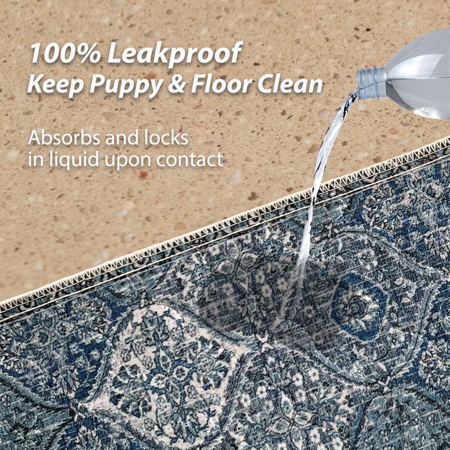 nunubaby Washable Pee Pads for Dogs, Stylish, Non-Slip and Leak-Proof Pee Pads. Reusable Potty Pads for Dogs for Crates and Floors.(Blue/Multi, 24" x48" )
