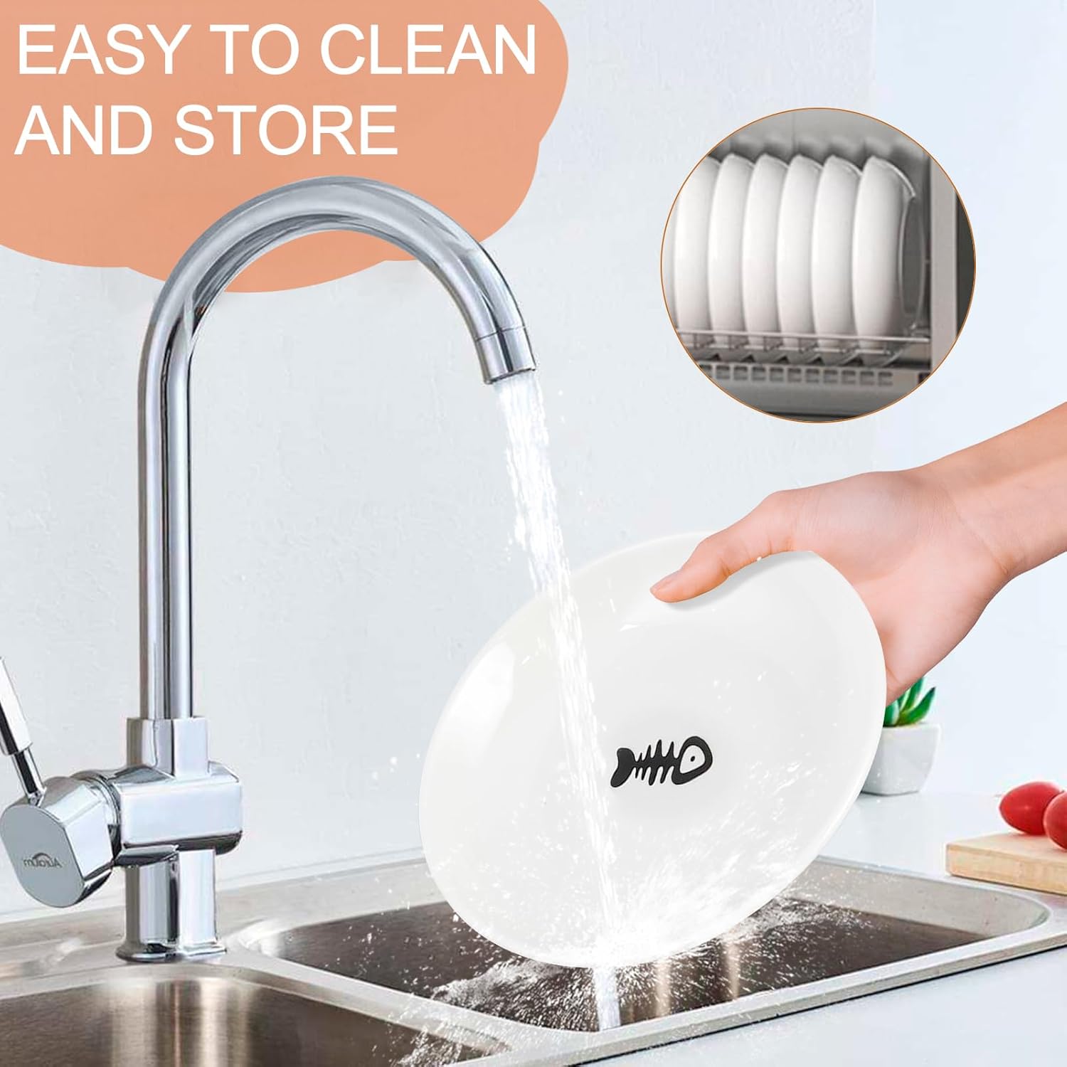 - đžă6 Cute Cat Bowls Set to Meet Various Needs of Multi-Cat FamiliesăThe cat food bowls with fishbone patterns make the food look more delicious, easier to attract the cat's attention and increase the cat's appetite. The 6 cat bowls can easily meet the various needs of families with multiple cats and other pets: puppies, rabbits, hamsters. The kitten food bowl can also be used to hold different foods: wet and dry food, cat snacks, kitten milk, water.