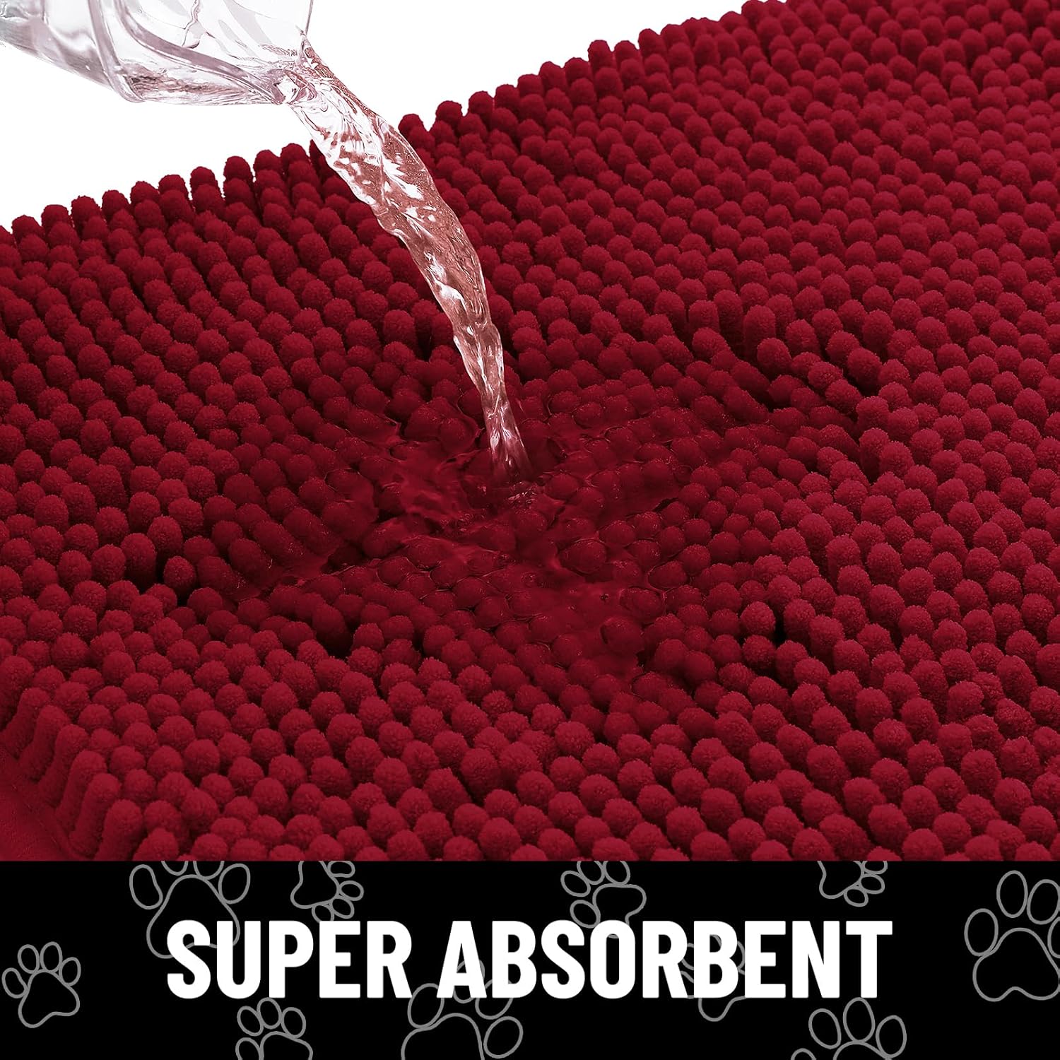 Smiry Dog Door Mat for Muddy Paws, Absorbent Dirt Trapper Non Slip Quick Dry Washable Chenille Mat for Mud Dogs, Entry Rug for Indoor and Outdoor (30x20 Inches, Red)