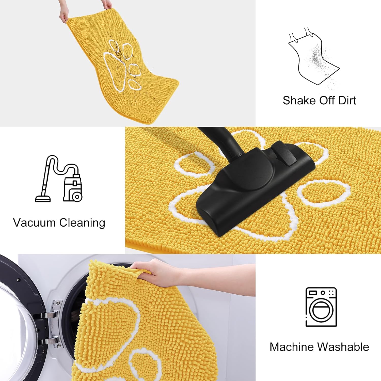 Smiry Dog Door Mat for Muddy Paws, Absorbent Dirt Trapper Non Slip Quick Dry Washable Chenille Mat for Mud Dogs, Entry Rug for Indoor and Outdoor (48x30 Inches, Yellow)