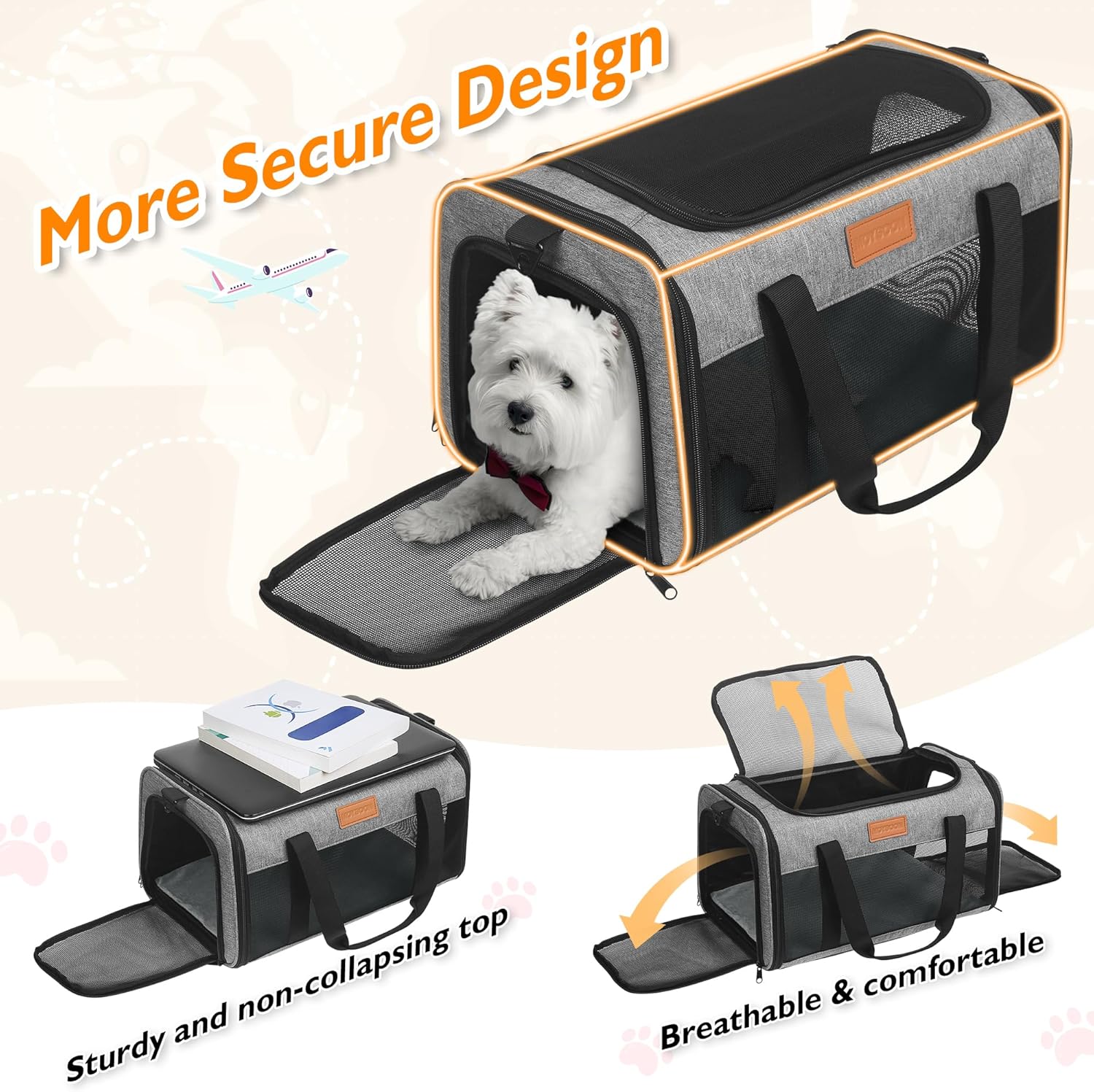 PETUX TSA Approved Pet Carrier in Cabin, 17"x11"x9.5" Soft Cat Carriers for Small Cat up to 12 lb and Puppy up to 10 lb, Top Open Portable Pet Carrier Airline Approved for Travel and Vet Visit (Grey)