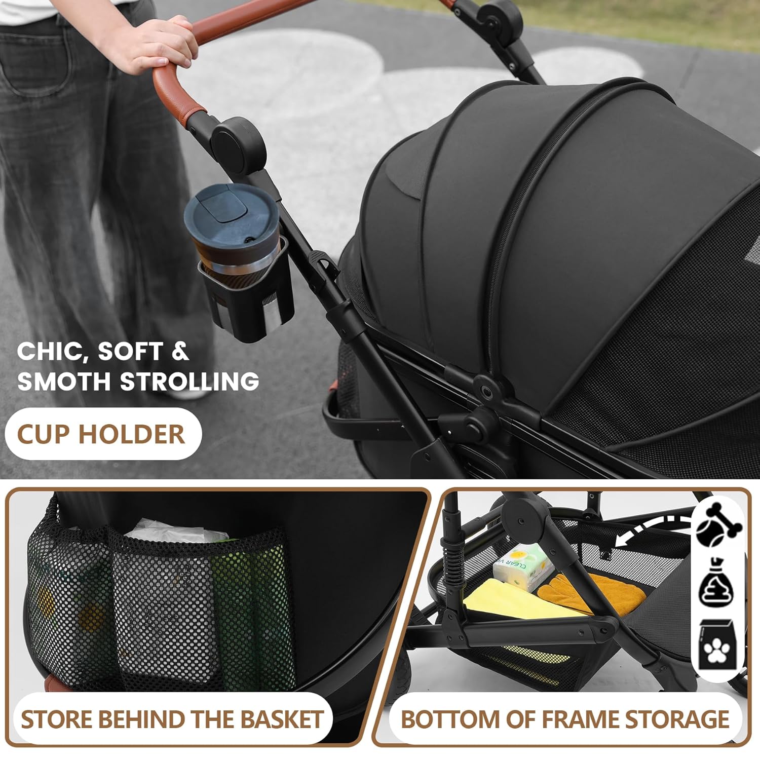 - ADVENTURES IN SAFETY - Navigate each turn with peace of mind, thanks to our cat carrier & stroller one-touch brake system and direction lockable front wheels. Dual internal tethers secure your pets, making this doggy stroller a fortress of safety. Perfectly suited for your senior dog, energetic puppy, or even your kitten duo on their outdoor explorations.