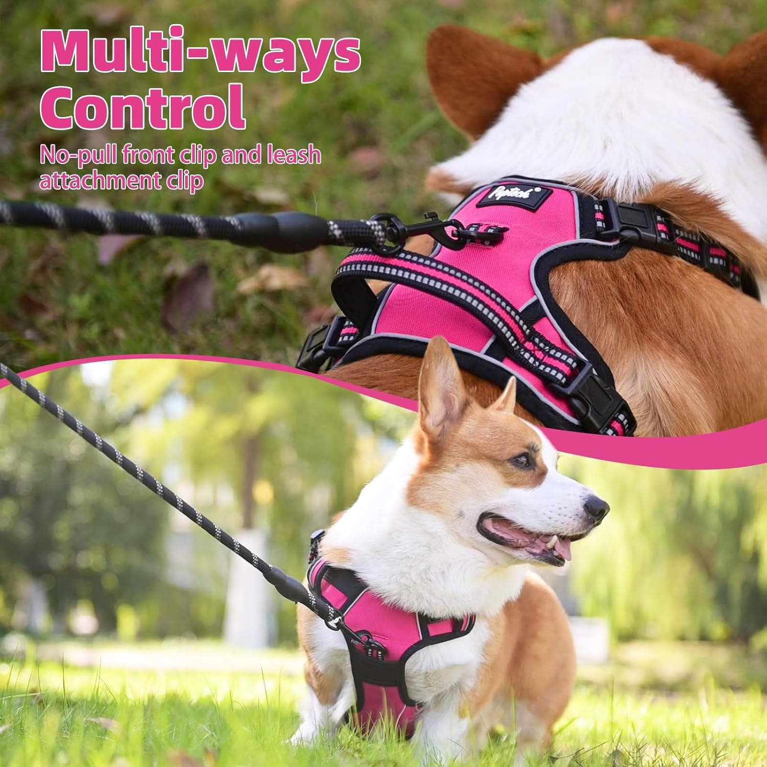 PUPTECK No Pull Dog Harness Small Sized, Adjustable Reflective Dog Harness with Handle Easy Control, Comfortable Soft Padded Pet Vest Harness for Small Dogs, Fuschia S