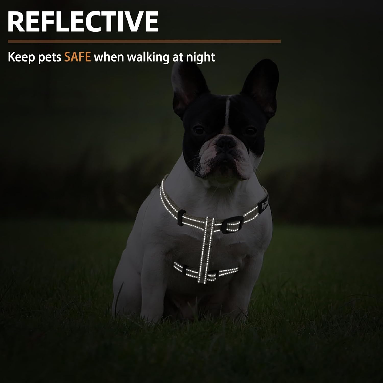 PUPTECK No Pull Dog Harness Soft Adjustable Basic Nylon Step in Puppy Vest Outdoor Walking with ID Tag, Reflecive Beige, S