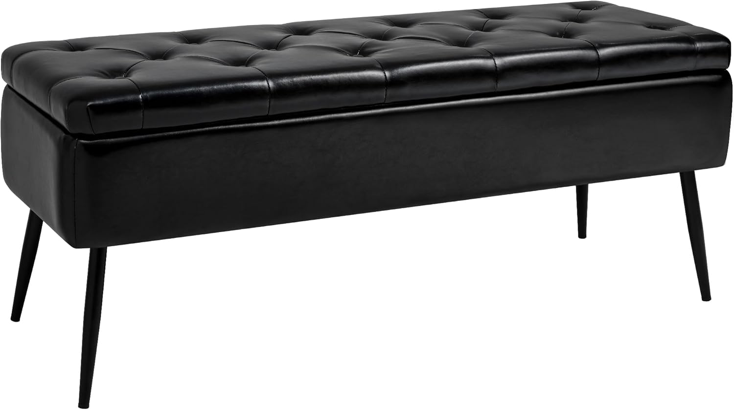 Leather Storage Ottoman Bench,End of Bed Bench for Living Room Bedroom Dinning Room Entryway,Mid-Century Modern,Faux Leather,with Steel Legs,Safety Hinges, Loads 660 lb (with Button, Black)