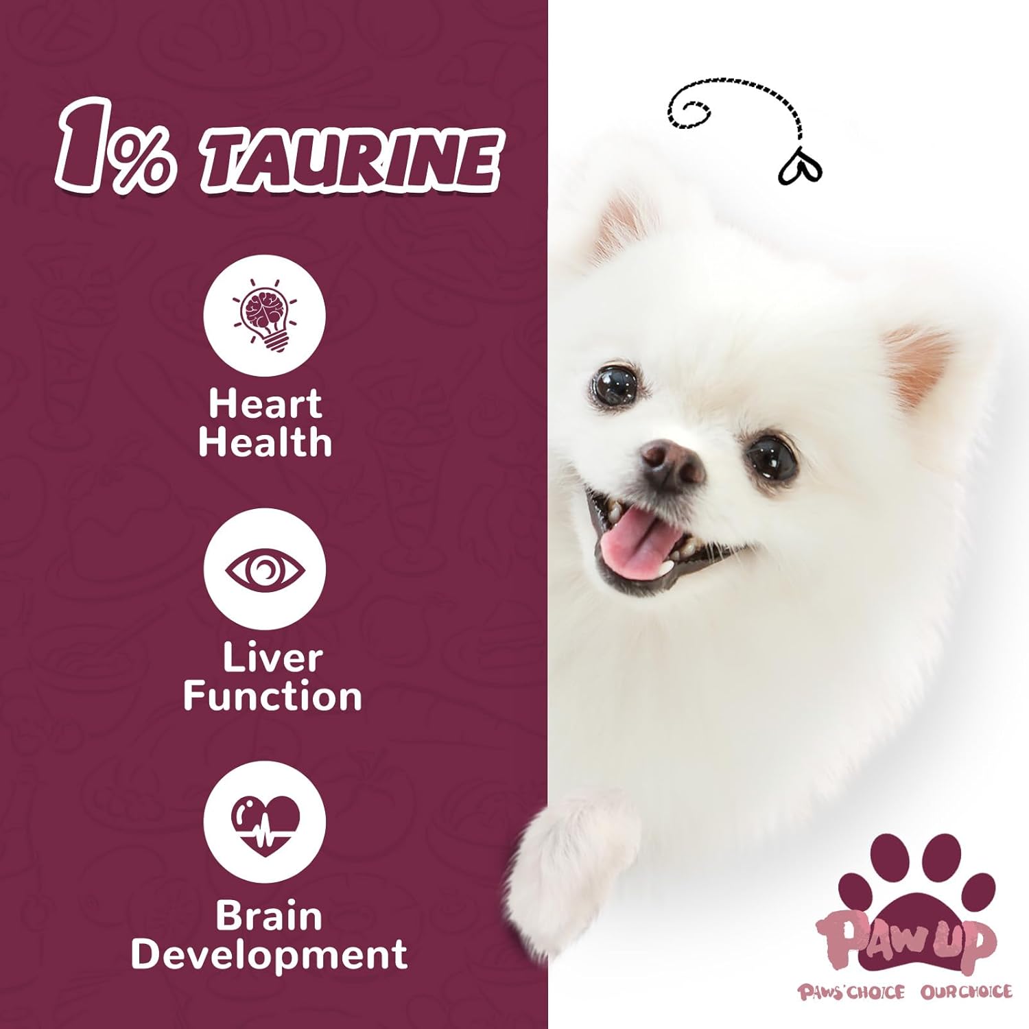 - Taurine Added: Infused with taurine, these duck jerky strips support heart health and cognitive function. They help protect your dogâs retina and encourage optimal brain development, making your furry friend more lively and energetic