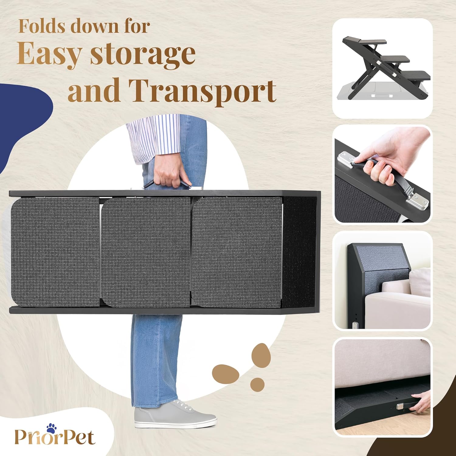 - NON-SLIP RUBBER SURFACE FOR OPTIMAL TRACTION: Ideal when in use as a ramp, this durable rubber surface offers excellent grip, enhancing safety and stability for your pet while climbing.