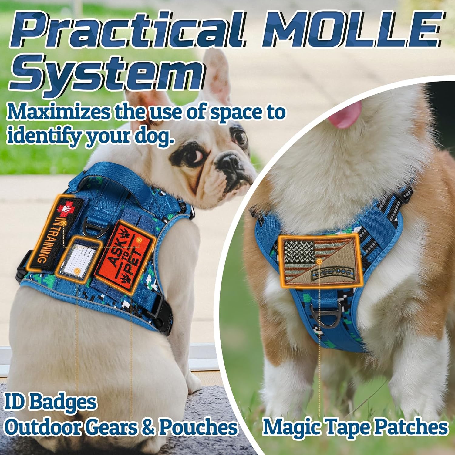rabbitgoo Tactical Dog Harness for Large Dogs, No Pull Military Service Vest with Handle & Molle, Easy Control for Training Walking, Adjustable Reflective Straps, Blue Camo, XL