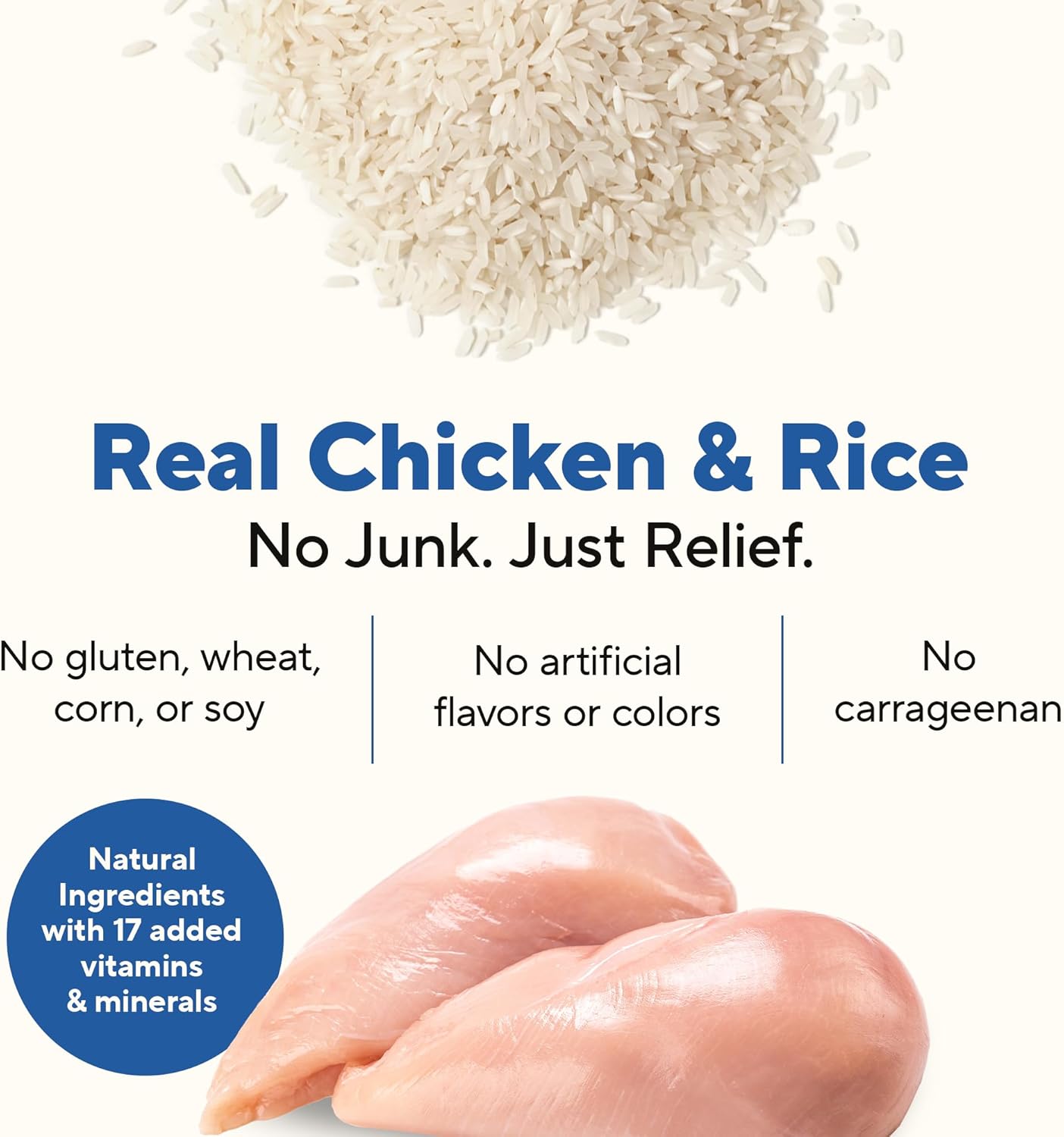 - A simple chicken and rice recipe thatâs formulated to help calm your furry friendâs tummy during times of transition; also ideal for the pup prone to stomach upset or sensitive stomachs