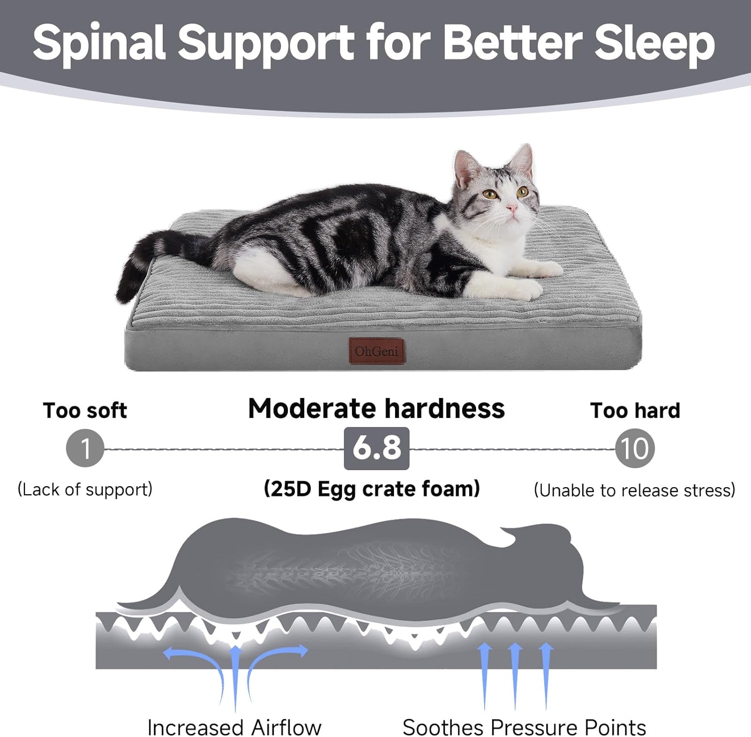 - Luxurious Comfort & Durability: Enjoy premium quality materials â plush corduroy surface with a 2-3 mm hair length, bonded with TPU for water resistance, and 25D Egg Crate Foam. Rest assured, our beds pass rigorous CP65 testing, ensuring safety and comfort for your pet.
