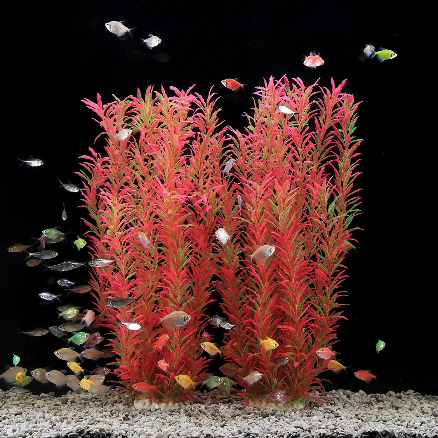 JIHAQUA 2 Pack Aquarium Decor Plastic Plants Extra Large 21 Inches Tall Fish Tank Decorations (Pink 2pcs)