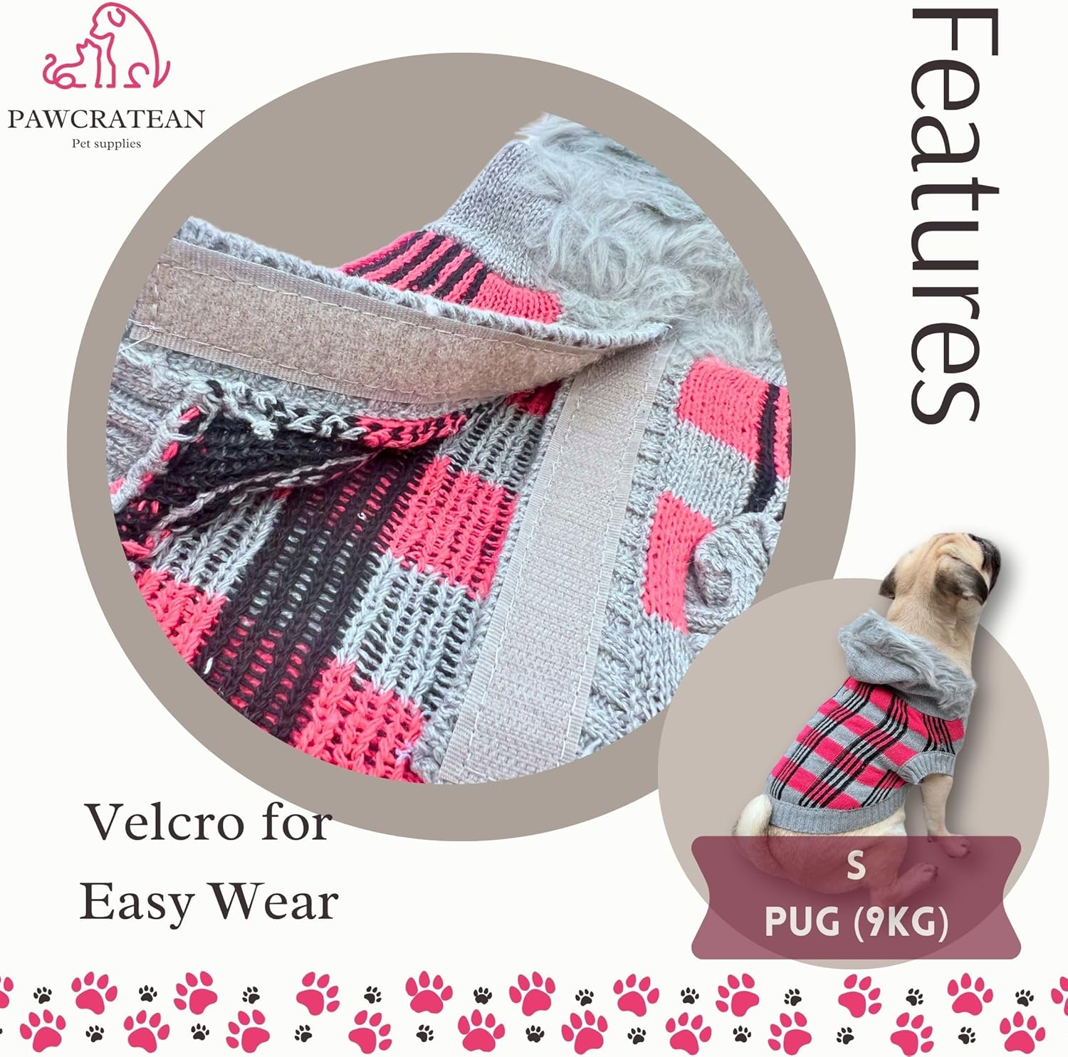 Cute Sweater for Dogs and Cats Soft Flannel Pet Outfit Warm and Cozy Animal Hoodie Small to Large Pet Clothes for Halloween Parties and Everyday Wear (Large, Pink Checkered with Hat)