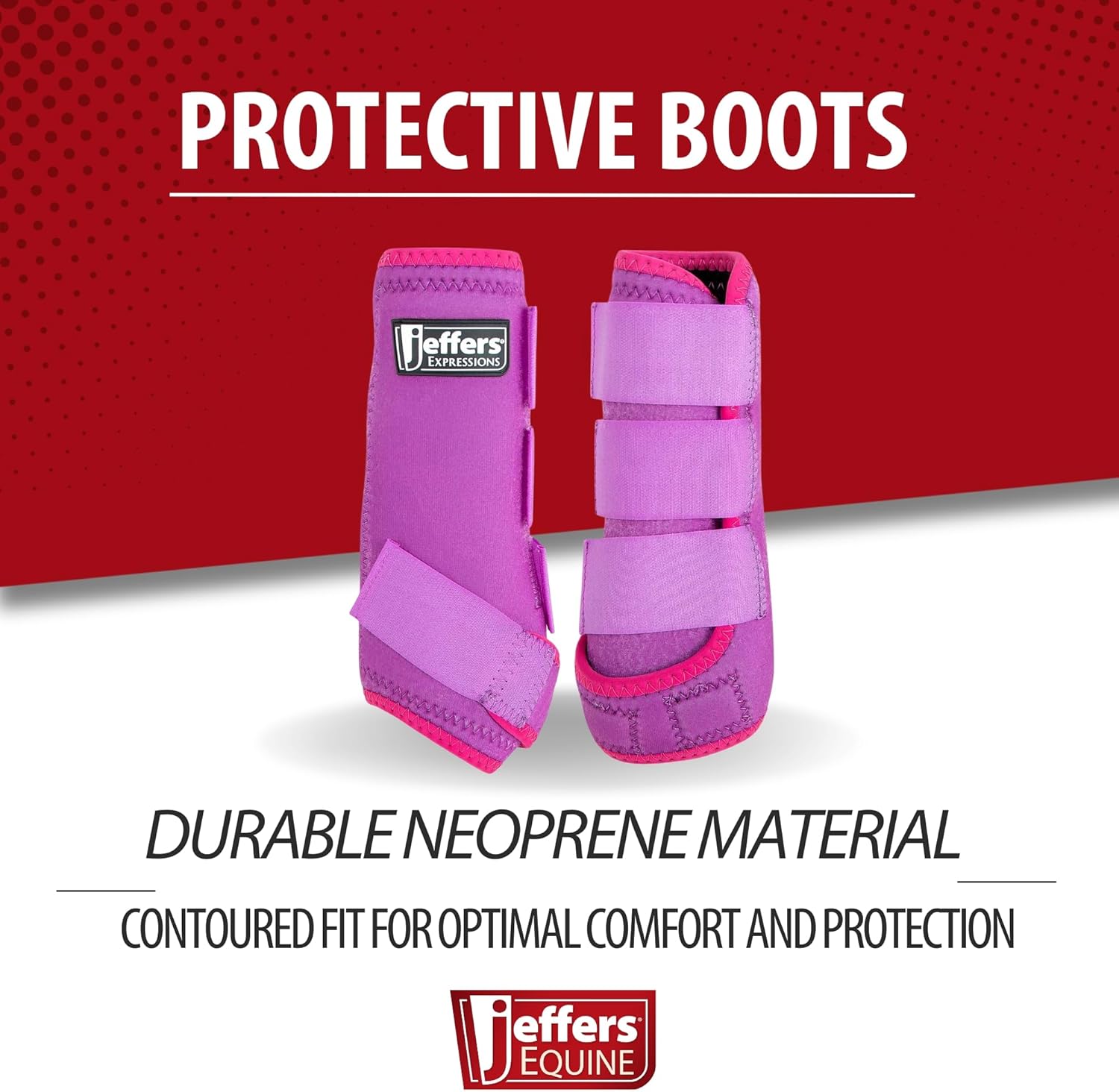 - High Protection for Hooves â Jeffers Expression boots are crafted from premium neoprene with a durable design to shield hooves from impact. Ideal for sports, riding, and equestrian performance.