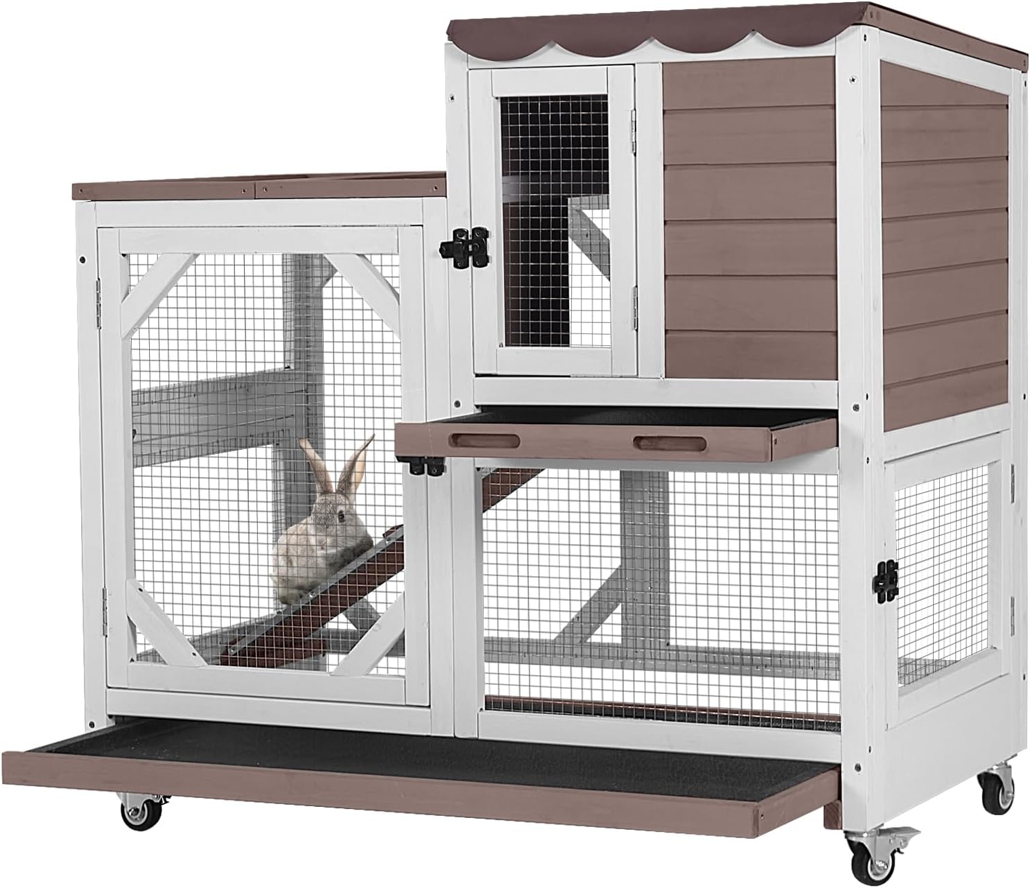 - Leak-Proof Trays: Two deep, pull-out trays keep your bunny's home clean and dry. These trays are leak-proof, making cleaning a breeze and providing a healthier environment for your pet