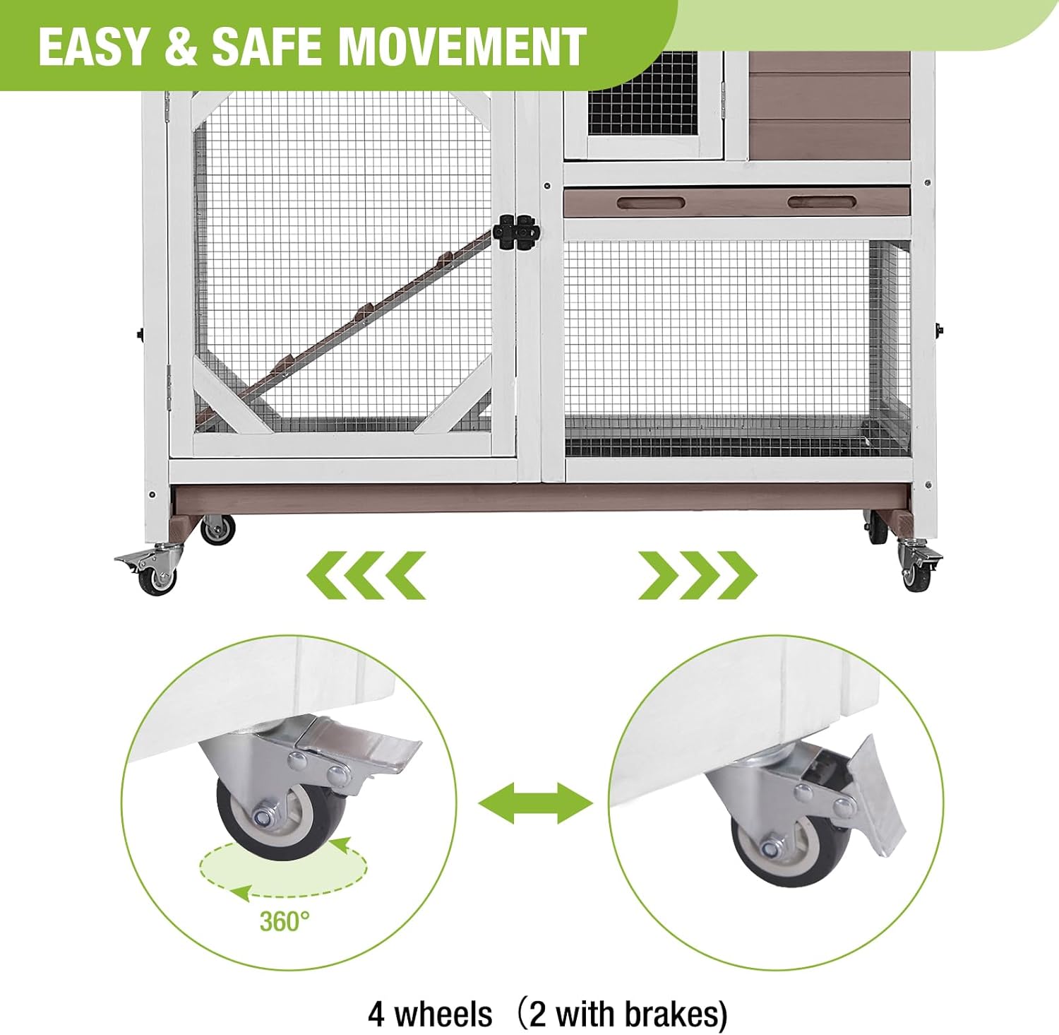GUTINNEEN Rabbit Hutch Indoor Outdoor 2 Story Bunny House on Wheels Wood Rabbit Cage with 2 Pull Out Trays Guinea Pig Cage