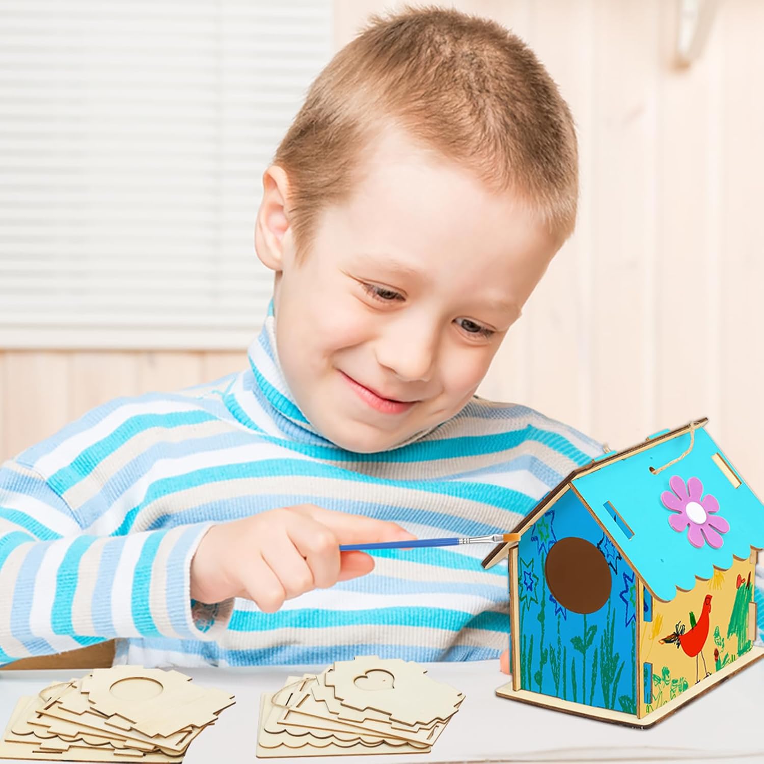 - Bird House Craft for Kids: Our DIY arts and crafts kits come with everything needed to create birdhouse,bird feeders and wind chimes, including 12 paints, 2 brushes, a sheet of diamond stickers, strings, and instructions.Fully equipped, kids can play freely and create their own artwork!Fun and creative crafts keep them busy and enjoy the handcraft entertained.let their creativity run wild!