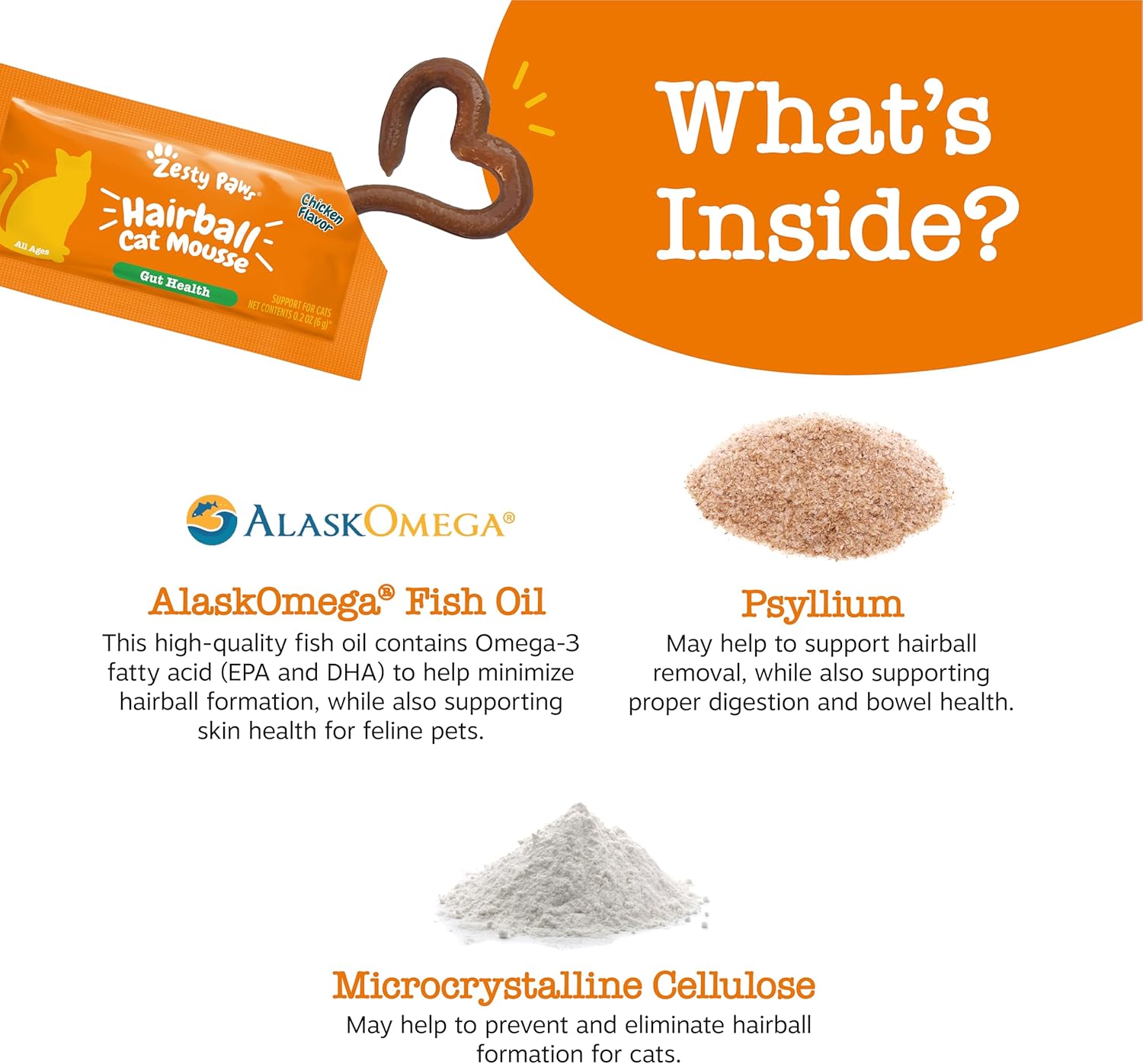 - Put the "Squeeze" on Pesky Hairballs - Zesty Paws Hairball Cat Squeeze Treats provides your pet with a tasty squeeze of ingredients that target hairball formation, gut function, and skin health.