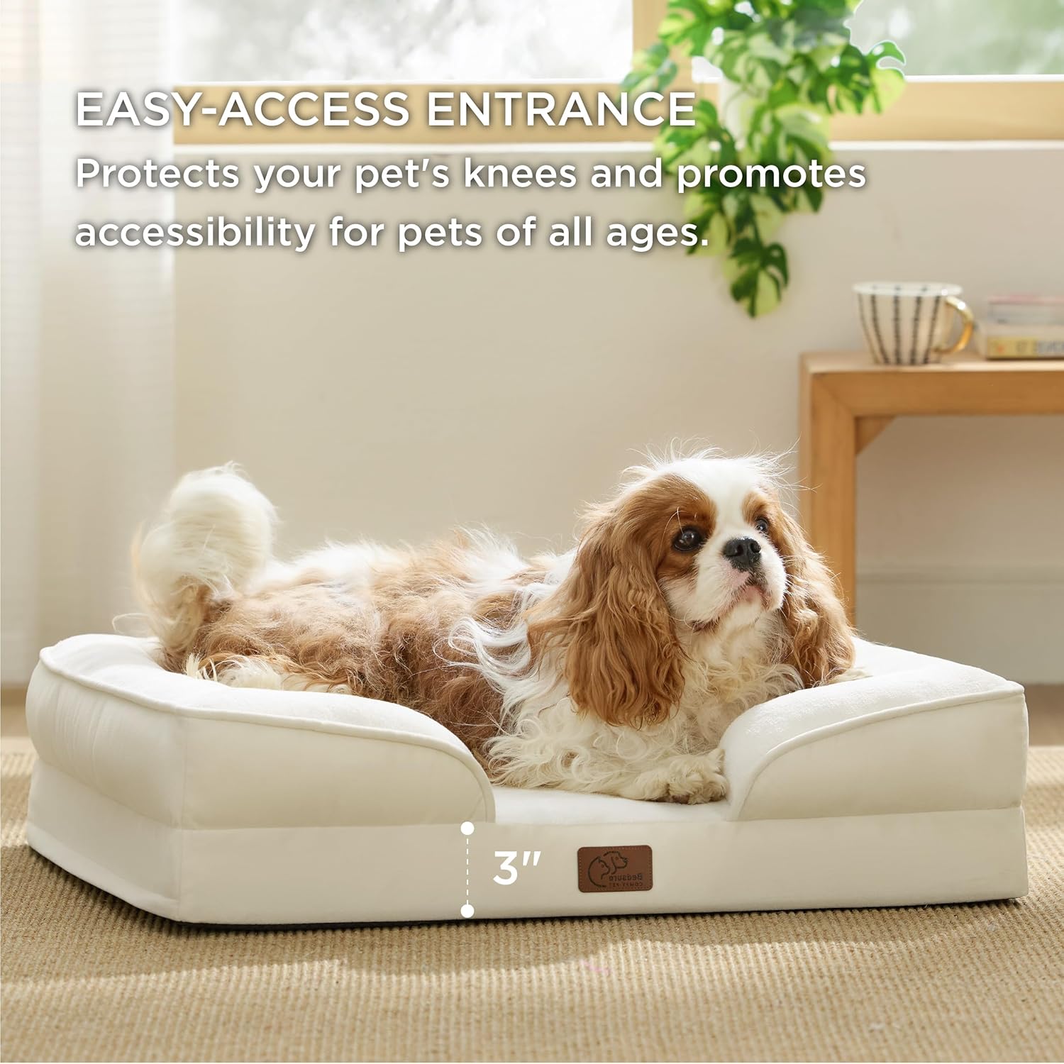 - Enhanced Comfort: The 4-sided bolster design promotes ultimate comfort and security, offering your pet a variety of cozy positions to snuggle. The cushioned bolster shape is deeply filled to support your petâs head and neck for a more restful sleep. And the lowered entrance protects your pet's knees and promotes accessibility.
