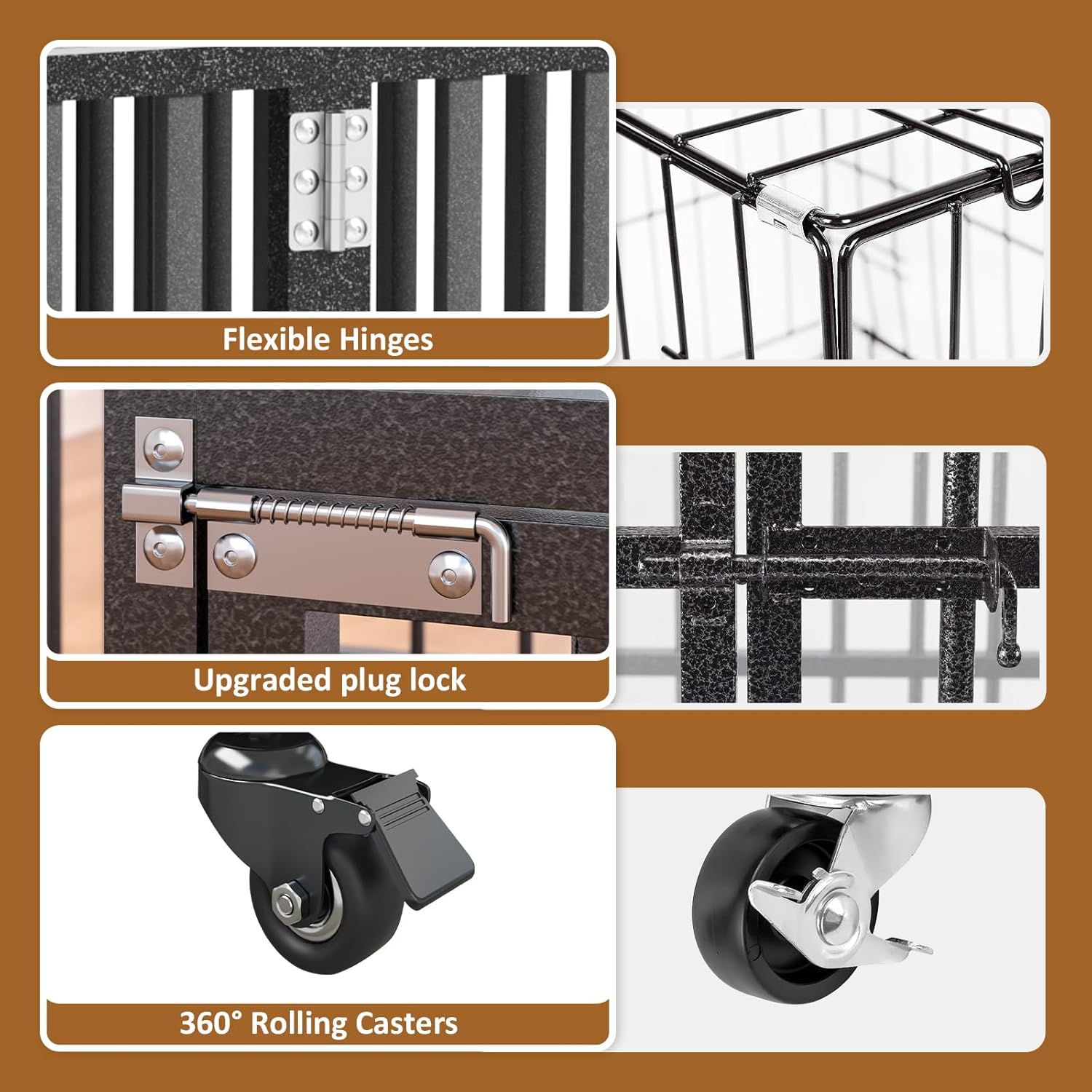 - Safe and Durable Protection: Coated with a durable hammer-tone finish, this dog cage resists rust and corrosion, making it suitable for both indoor and outdoor environments. The non-toxic frame coating guarantees your petâs safety, even if they chew or lick the crate.