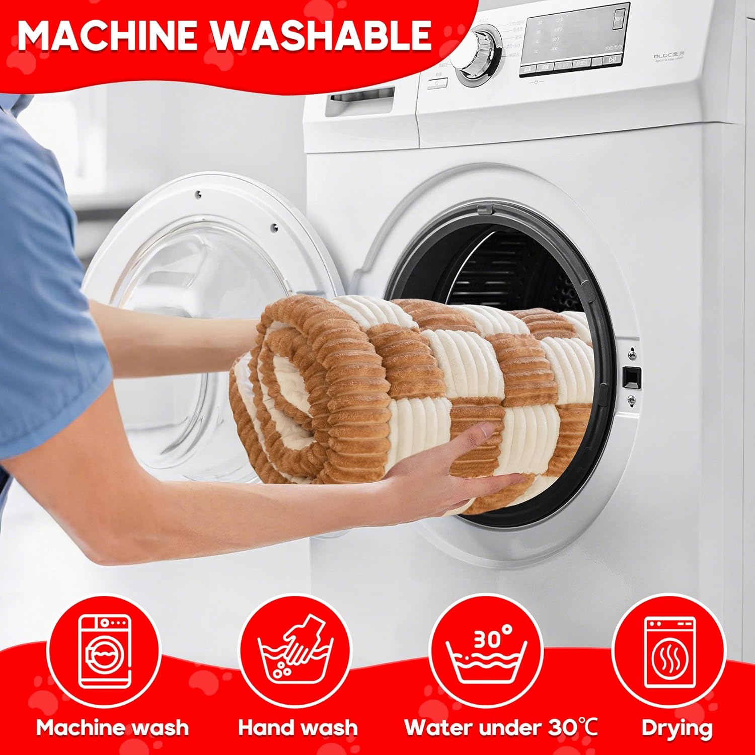 - đ§źăDurable and Easy to CleanăWe understand that pet products need to withstand daily wear and tear. That's why this fuzzy dog bed is made of durable materials that can endure your pet's scratching, chewing, and all kinds of daily abrasion. Moreover, it's extremely easy to clean. When the mat gets dirty, simply wipe it or throw it in the washing machine, and it will quickly return to a clean and tidy state, saving you time and effort.